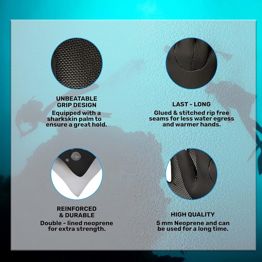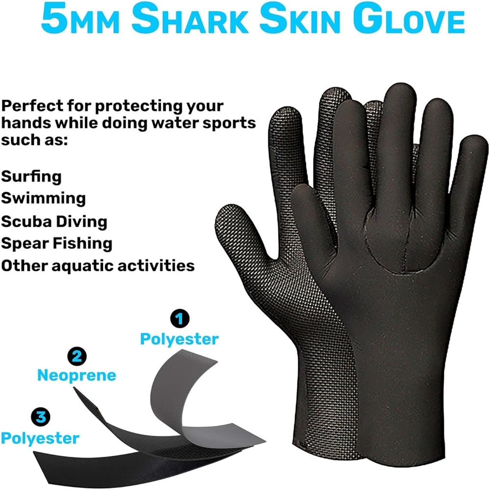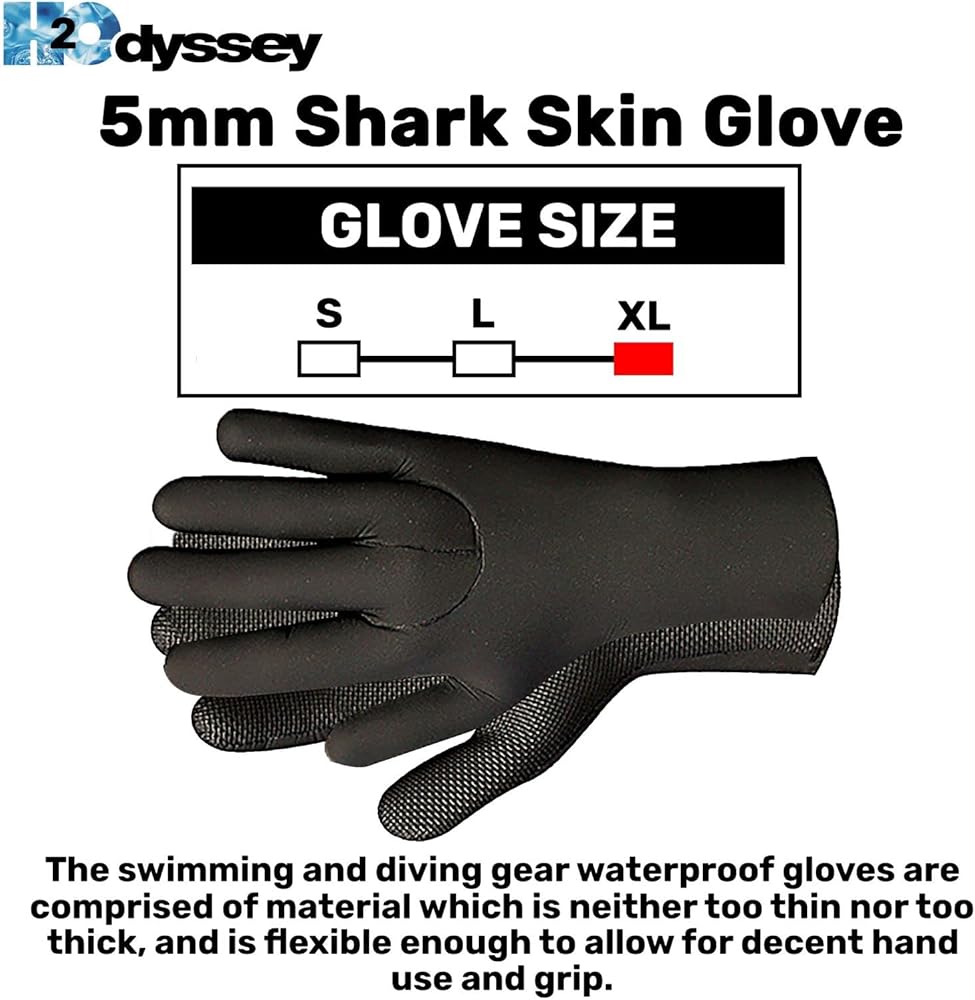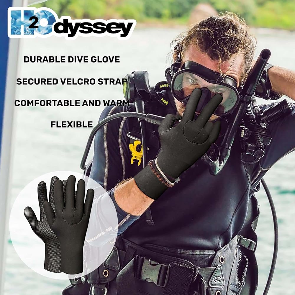 The H2Odyssey waterproof gloves are made of neoprene material with a water resistant back end cover. These thermal insulation swim gloves are great for all water activities. The moisture control neoprene gloves are scratch resistant, long lasting, and come with an anti slip polyvinyl chloride palm grip that provides a firm grip on all your diving equipment. These multi purpose unisex gloves can be used for all water adventure. They can double up as lobster gloves, scuba gloves, sail gloves, saltwater gloves, under water gloves, wakeboarding gloves, waterski gloves, bodyboard gloves, crab gloves, and also as spearfishing gloves. The neoprene gloves waterproof, are thermal gloves that provide heat protection for extra warmth to your hands while you are scuba diving deep down on the ocean floor. These thermal waterproof gloves will also protect your hands from rough rocks under the sea and the sand on the beach. The windproof waterproof warm gloves can be used to provide total protection from sting ray, jelly fish and any other marine animal. Our wetsuit gloves are made with super soft and thick neoprene material that gives a flexible fit and aids free movement of the hands. The velcro straps on the wrist cuffs give a perfect fit that makes this pair of waterproof work gloves that provide maximum comfort, easy to use in all water sports. The super soft water proof hand gloves from H2Odyssey are super flexible and prevent water pouring in to make your water sports a great, fun time water adventure. The snug fit of the uv protection gloves comes from the velcro straps on the wrist band. This ensures that the non slip grip glove keeps you, your snorkeling accessories as well as surfing accessories safe under water. These seal skin gloves waterproof keep the hands of the diver warm and cozy and enable a non slip hand grip on the diving gear or other water sports equipment.
