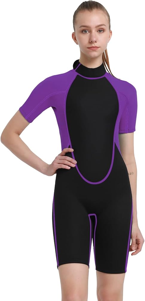 【Core Warmth】The neoprene wet suit plus size for women should fit snugly and tight to the body, thus to keep the body heat when in the water. Shorty women wetsuit shortie with stretch panels provide excellent flexibility, have good buoyancy in water, keep you warm in cold water while keep your arm and legs flexible enough