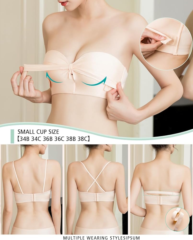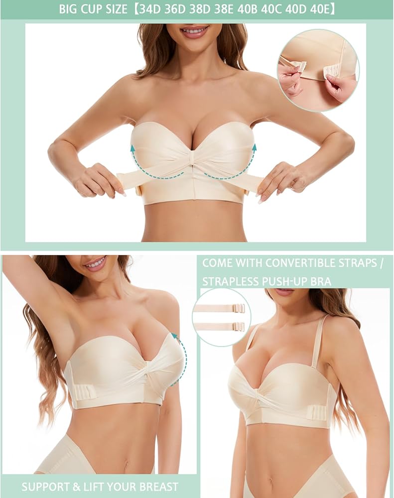 🌻 MATERIAL & NOTE: 💚Soft, 4-way stretch fabric provides smoothing across the back. Stretchy cups cushioned against the skin comfortably, providing a natural shape without squashing. Skin friendly fabric bring you comfort for the whole day. This nice bra with a variety of sizes between 34B to 40E. It's the indispensable fashion item bra for your wardrobe. Please refer to our size chart to find your perfect size. Hand wash for longer durability. This strapless backless bra is the best gift.