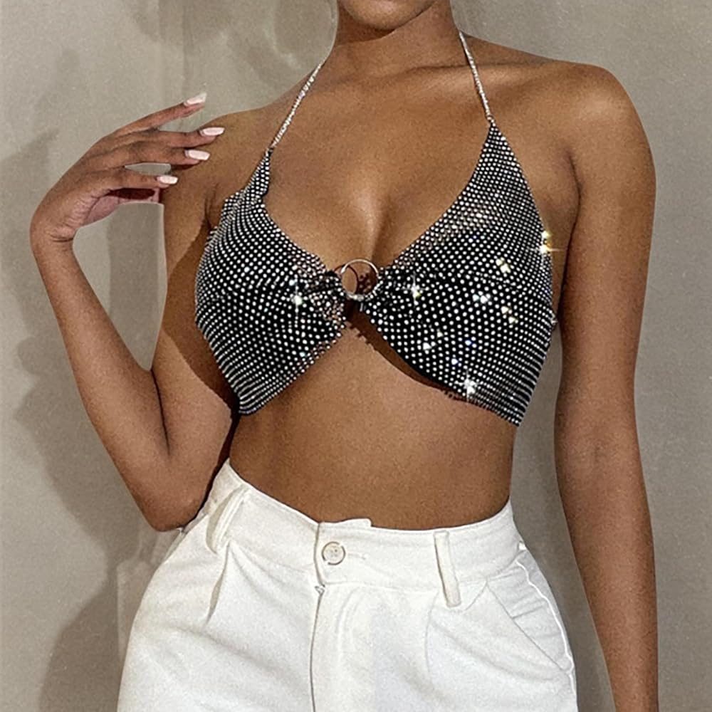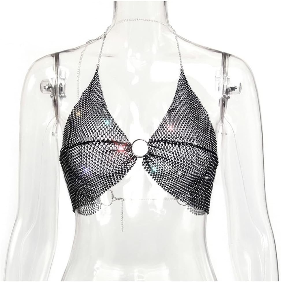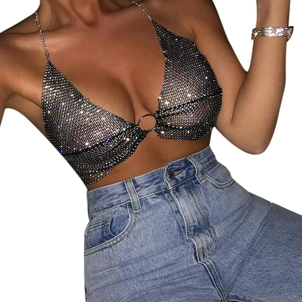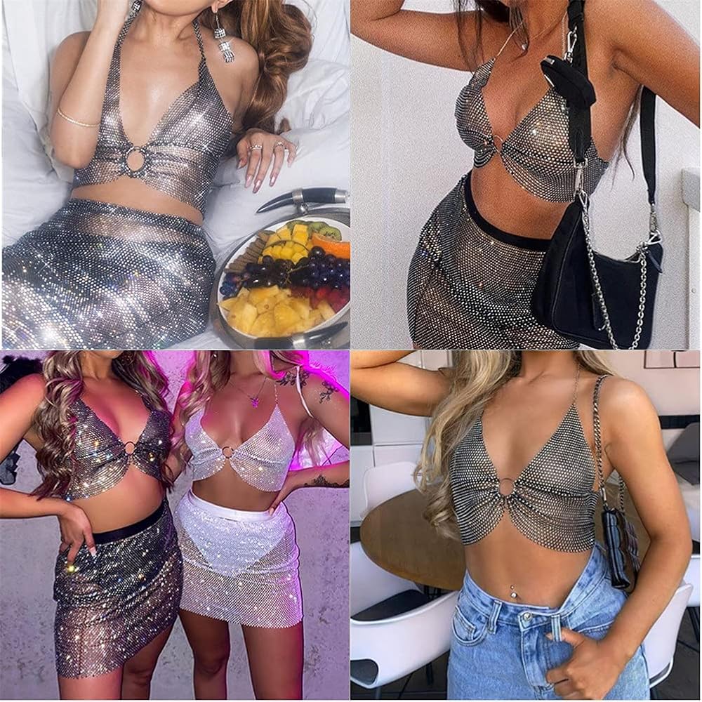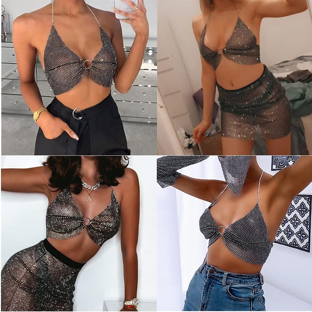 MATERIAL: The shiny rhinestones are connected by soft mesh polyester, this sexy top is breathable, comfortable and no itchy.