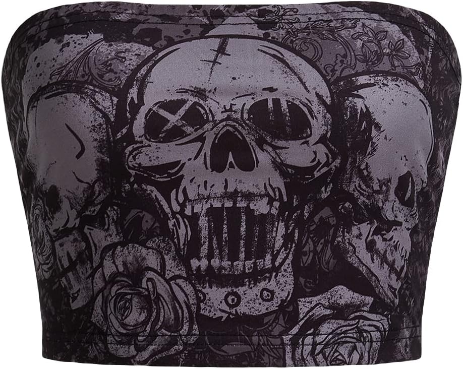 - Features: Skull, floral print, strapless, sleeveless tube tops, bandeau tops, slim fit, fashionable