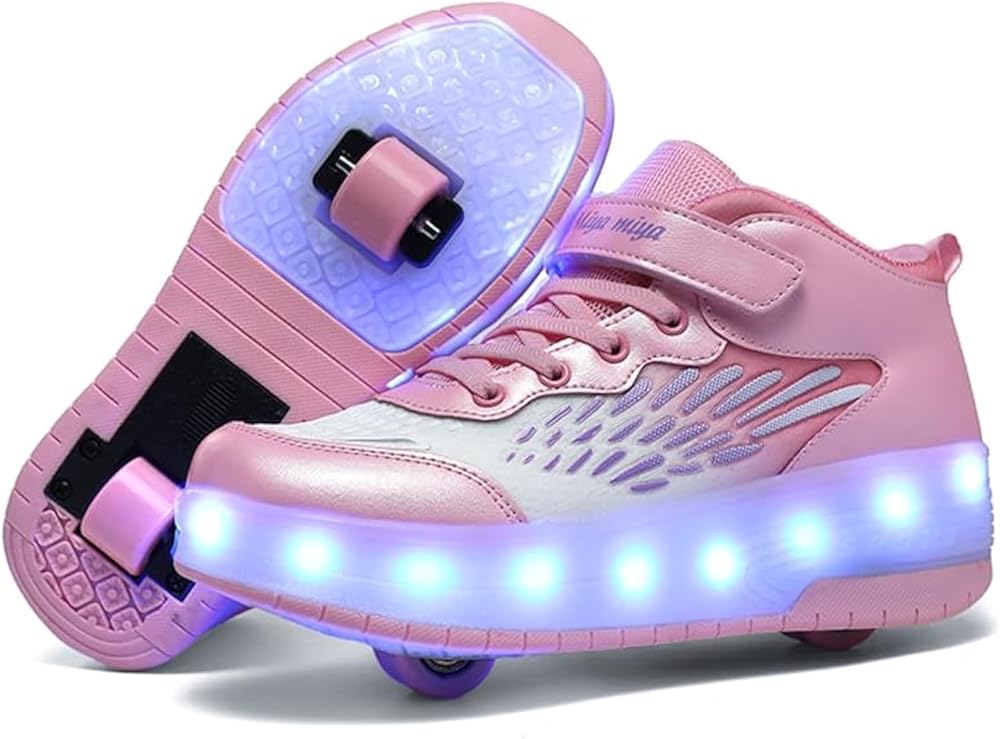 ❤【Excellent Function】Easy to use, the wheels can be stowed, you can choose to release the wheels when you need to slide, and immediately retract them when you don't need them (single wheel mode). The release and retraction switch is at the heel of the shoe. The convenient Velcro eliminates the trouble of tying shoelaces.