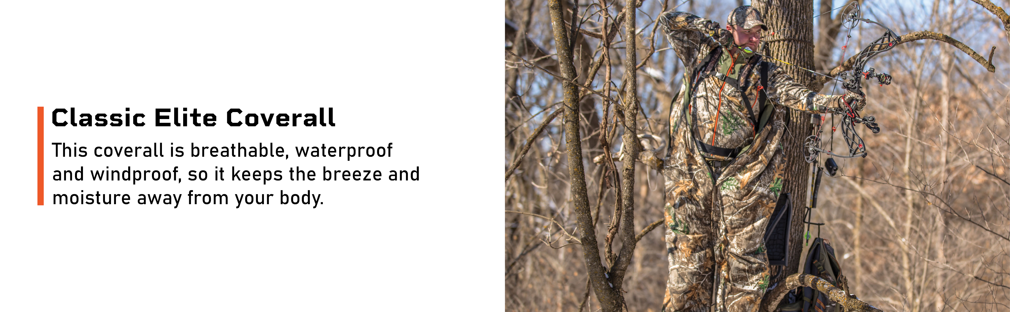 The Classic Elite Coverall features the Retain™ heat retention technology, keeping hunters warm. It's breathable but also waterproof and windproof, so it keeps the breeze and moisture away from your body. With the all-new X-System™ scent control in lining, hunters can rest assured their scent output remains at a minimum. This body suit is perfect for slipping over whatever you have on. It has built-in internal straps, so you can wear it without pulling it up over the shoulders. Then, pull it up into position when you get to your hunting spot, or continue to wear it down until you need the full body warmth benefits it provides.