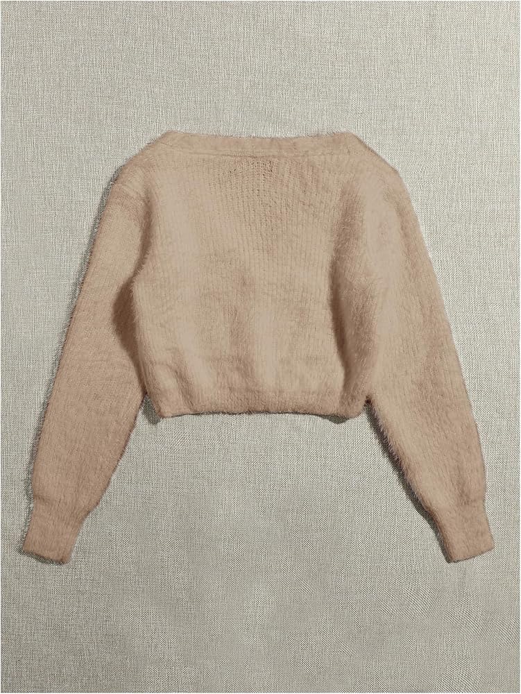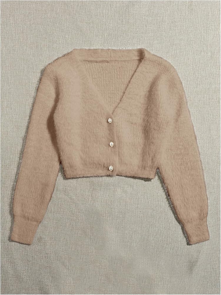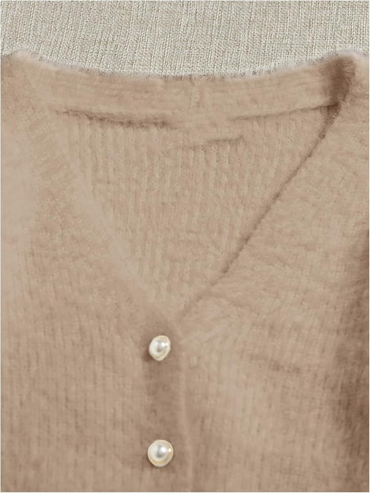 Vintage cute cardigan features faux pearl button, v-neckline, open front, long sleeve, cropped length for women teen girls