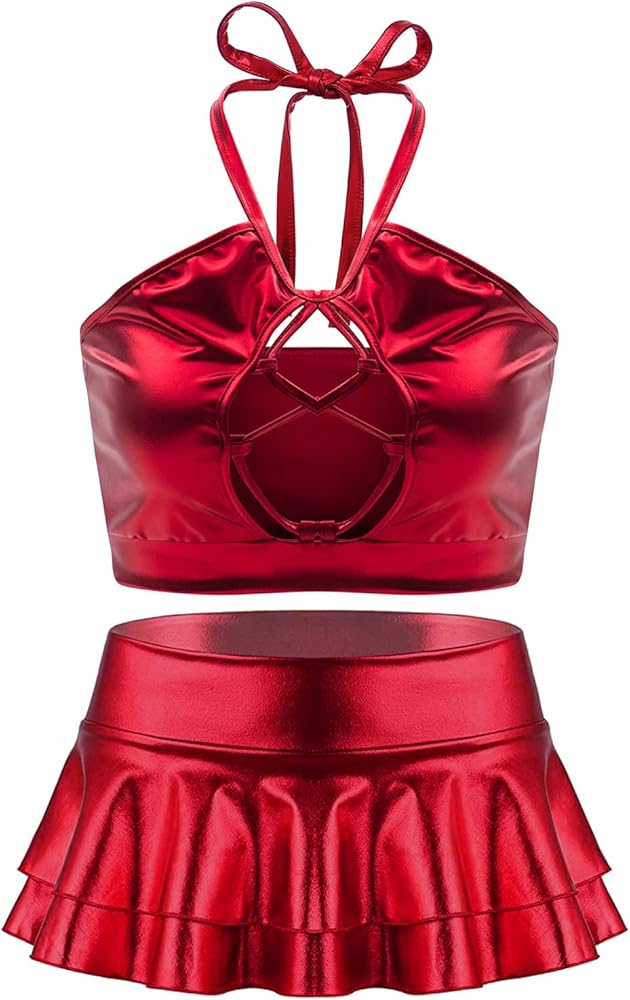 Perfect For: Rave outfit for women/rave outfits for women festival/cheerleader costume/costumes for women naughty/stripper outfits exotic sets/exotic outfits for strippers/holographic 2 piece for women/metallic halter skirt set. Suitable for women, female, ladies, school girls, teen girls, girlfriends, lovers, bridesmaids guests, dancers, homecoming skirt set. A great gift for yourself, or Valentine's Day gift/Christmas gifts send to your lover, girlfriend or other female friends.