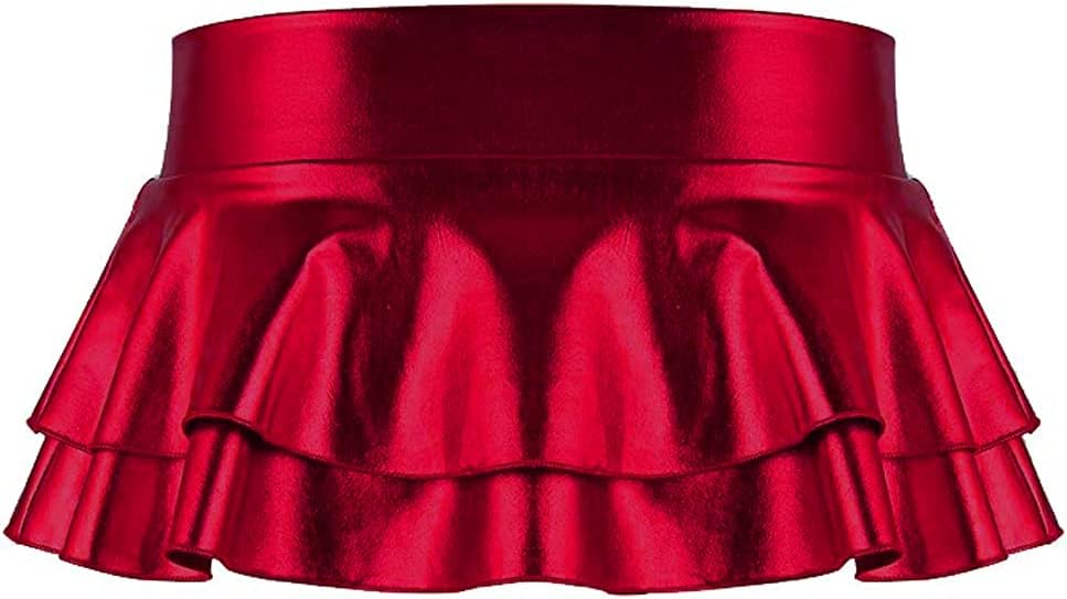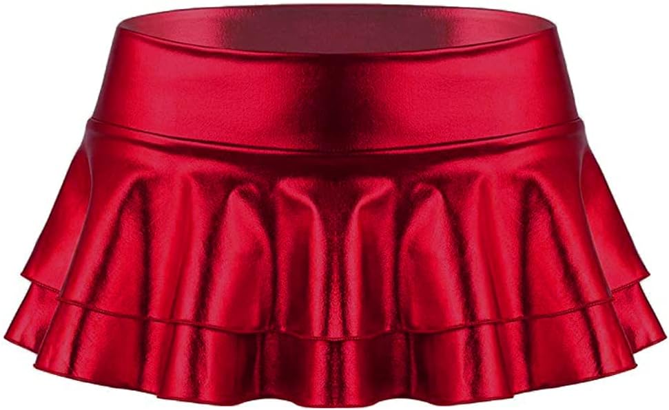 Design Features: Shiny metallic crop top, matching with ruffled ruched metallic mini skirt, makes you more attractive, charming and fashion, looks like a younger schoolgirl. The low rise double layered super mini skirt rave skirt, pull on closure, skirt hem just cover the hips, add much naughty and sexy, spice up your charm at anytime.