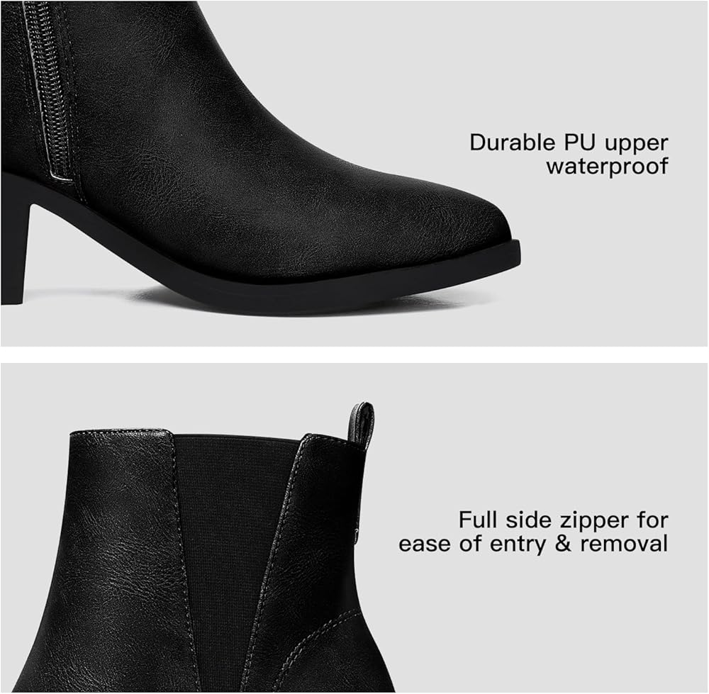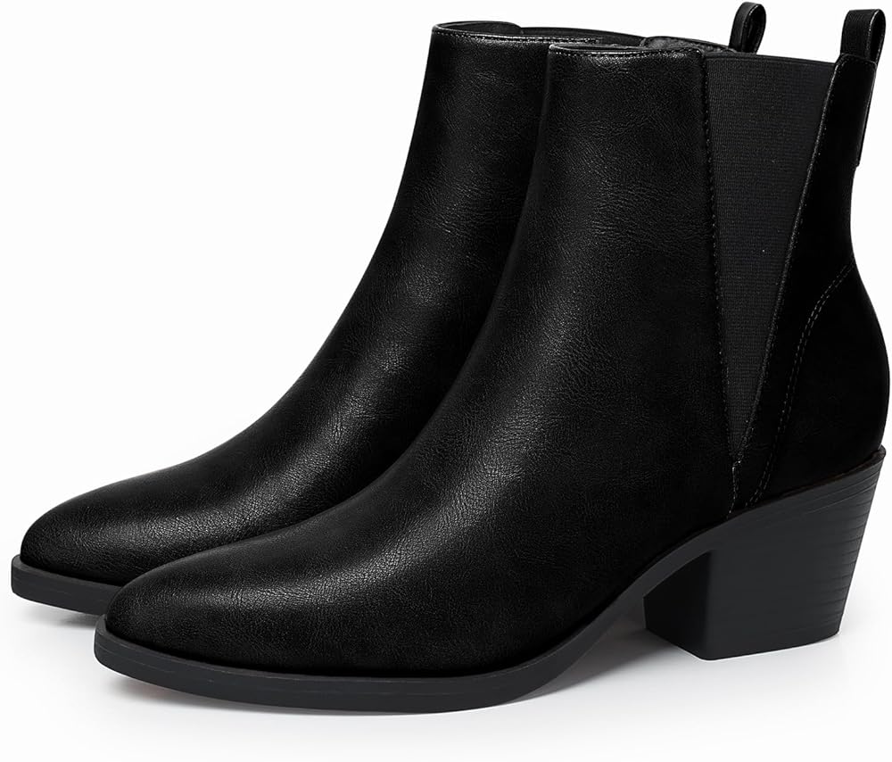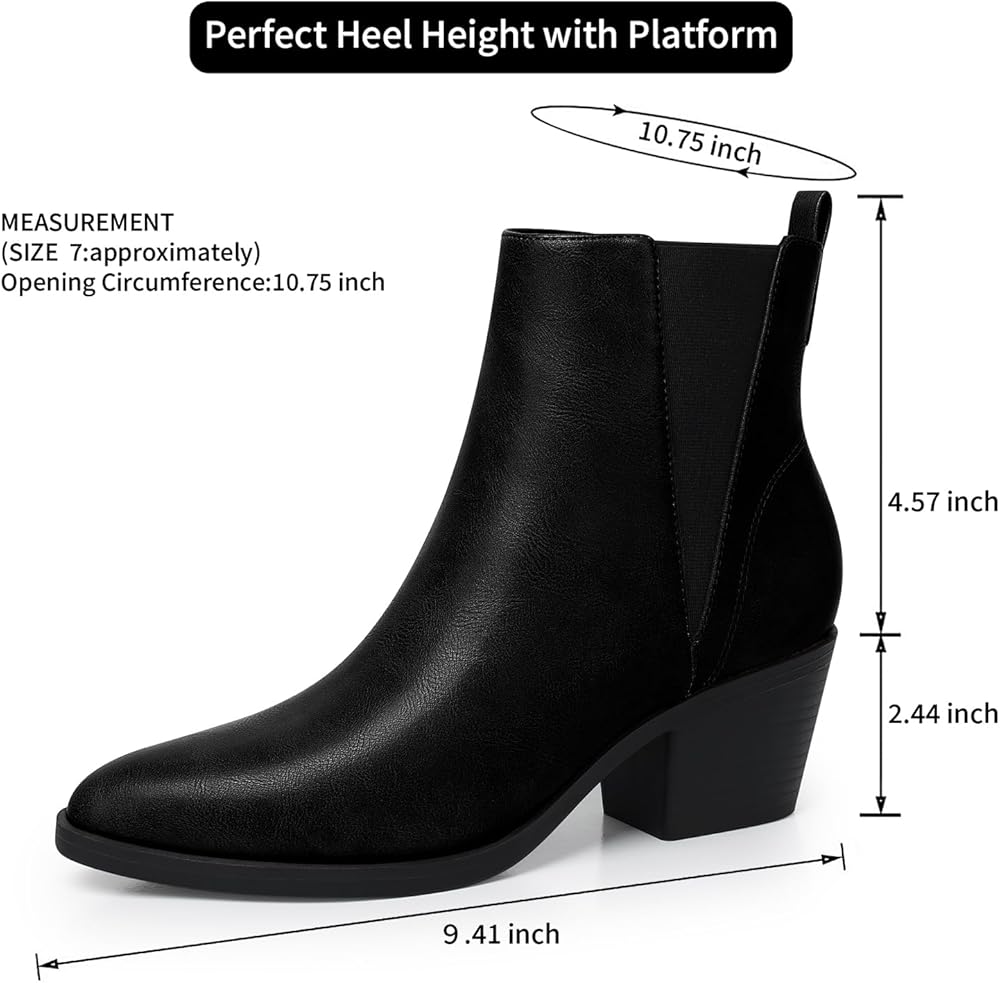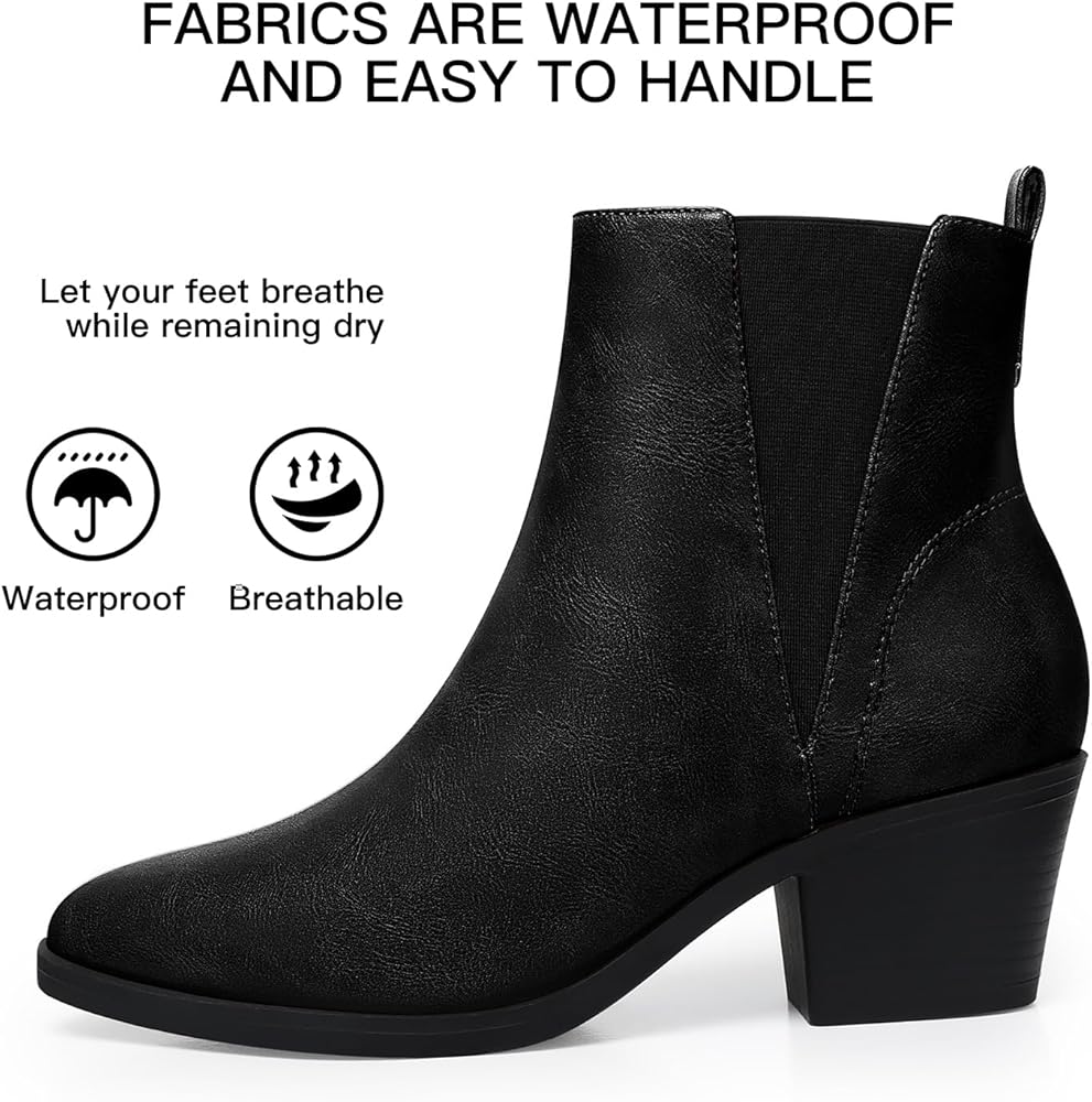 Complete your fall wardrobe with our trendy and versatile women's chelsea boots.The sleek black design and pointed toe create a chic and polished look, while the chunky heel adds stability and comfort. Made with premium materials, these boots are built to last. womens ankle boots low heel, ankle boots for women with heel, leather ankle boots for women, brown ankle boots, black ankle boots for women low heel, ladies ankle boots, ladies boots ankle boots, womens black boots ankle