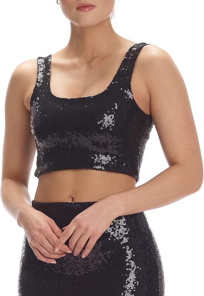 Commando Sequin Crop Top SEQ202 features all-over sequin details and just enough stretch to keep you lifted and in place. Elasticized underband. Square neckline and sleeveless style. Square-shaped back. Sequin detailing all over. 92% polyester, 8% elastane. Hand wash.