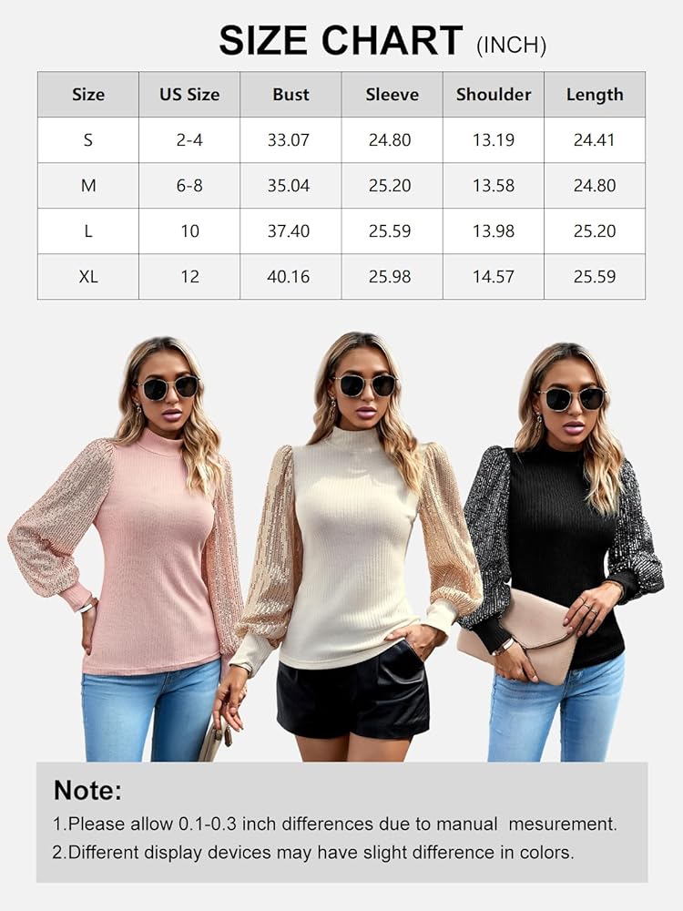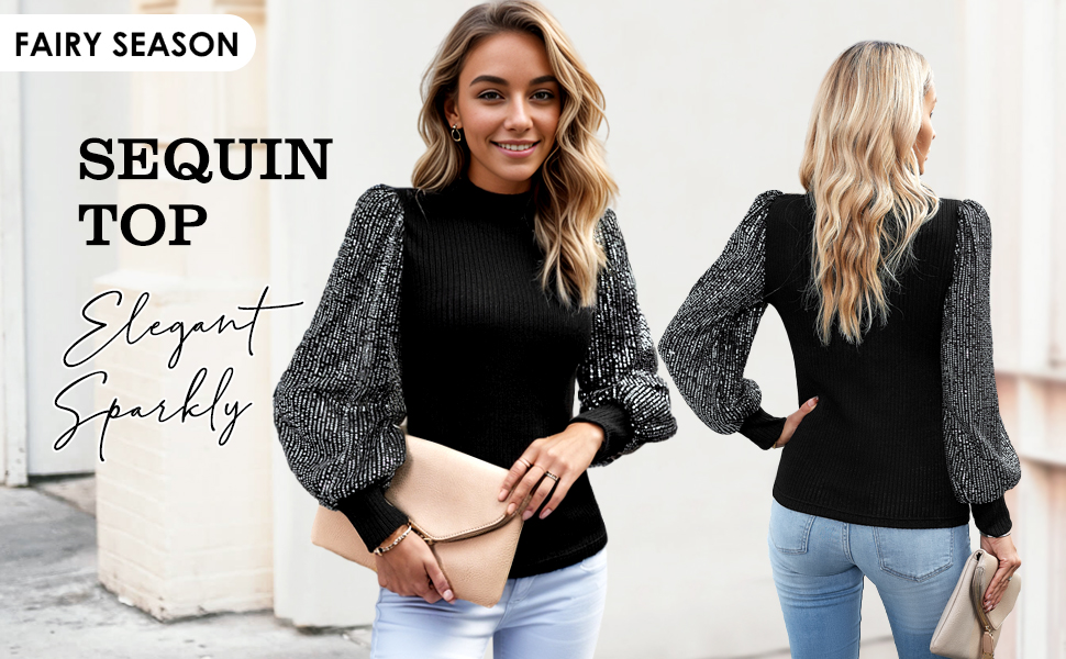 【Features】This Sequin Long Sleeve Top features a chic look, with elastic cuffs and a soft lining. The stretchy fabric and balloon long sleeves fit close to the body, giving you a lovely silhouette.