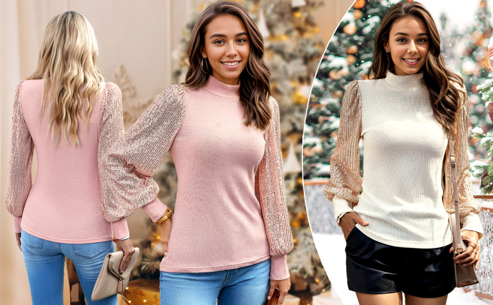 【Unique Design】Elastic fabric and soft lining provide more skin protection, suitable for all-day wear. The sparkle top has high elasticity that fits women of all shapes, slim or plump, this long sleeve sequin top has good upper body effect, making you confident, shiny, elegant, and sexy.