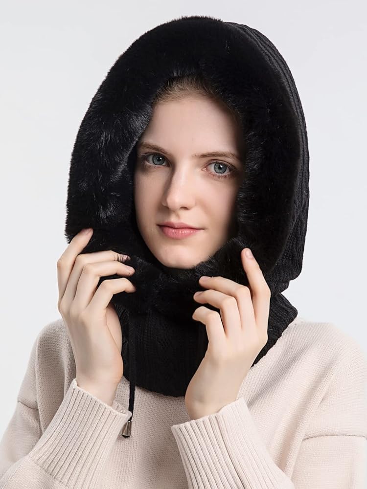 Size - One size fits most, drawstring closure, warm women cable knitted fleece hat, scarf covers your ears and face to protect against cold winds, lightweight ,not too bulky or heavy but extra warmer.