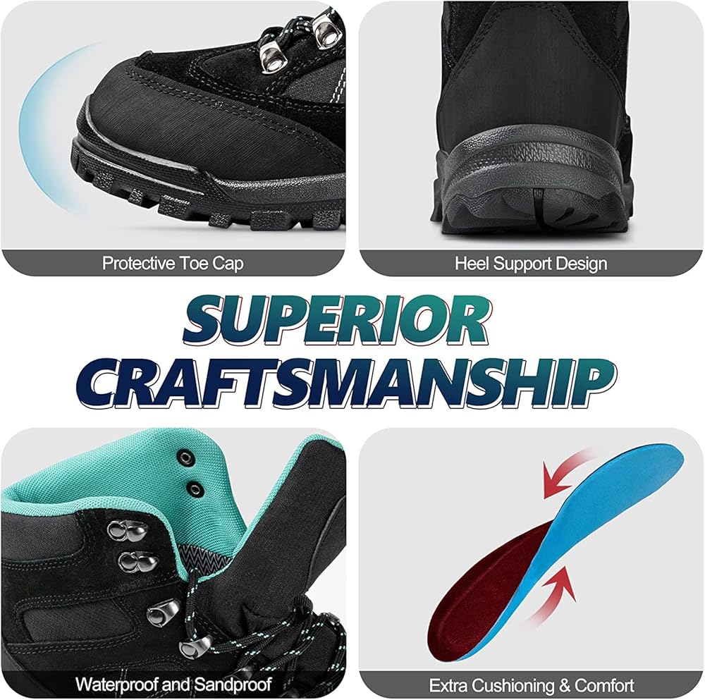 LASTING COMFORT - Our women's hiking boots have a durable rubber sole that provides greater comfort, which reduces foot fatigue as you traverse over thick roots and rocks. Padded tongue & ankle for extra cushioning and all-day comfort.