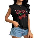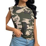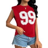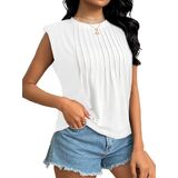 SOFIA'S CHOICE Women's Padded Shoulder Tops Casual Round Neck Loose Sleeveless Vest Tank Top
