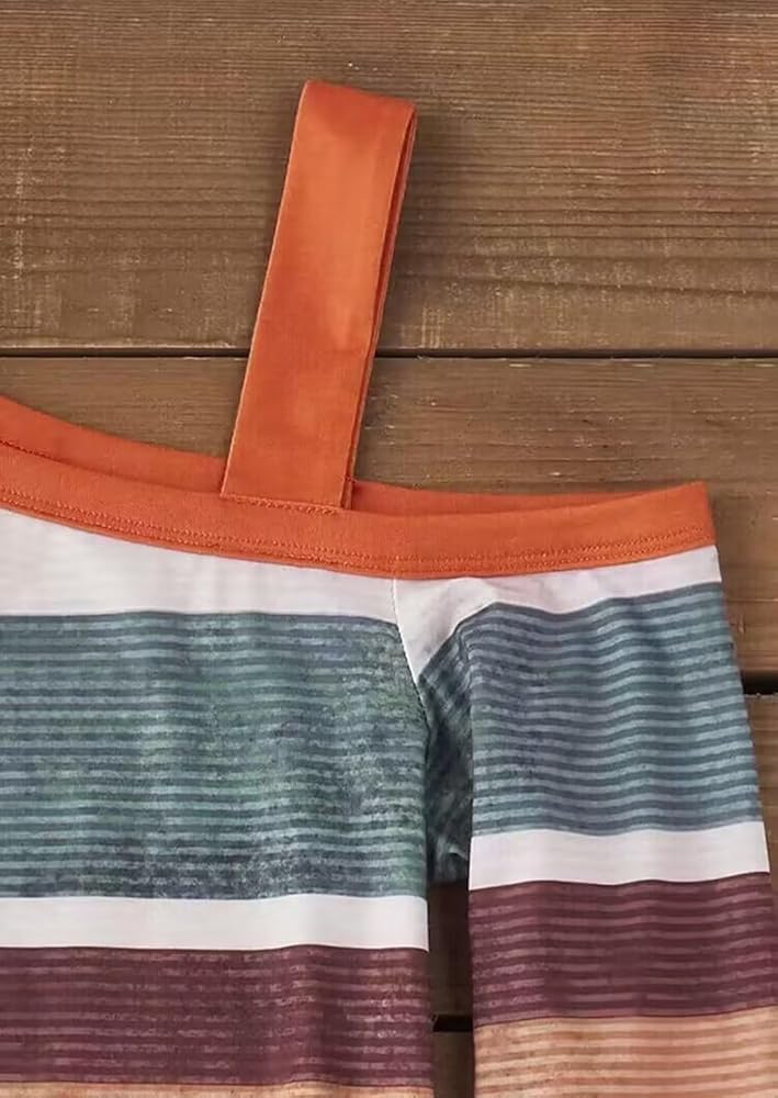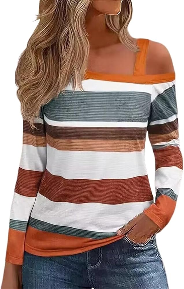 1.Color block, striped, long sleeve, knit, cold shoulder/one shoulder/off shoulder with spaghetti straps top blouse, slim fit pullover,cute and fashion.It is a perfect spring/fall/winter top and it looks sexy and cool. The unique off the shoulder looks stylish and elegant.