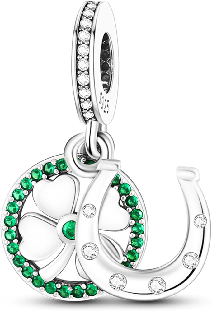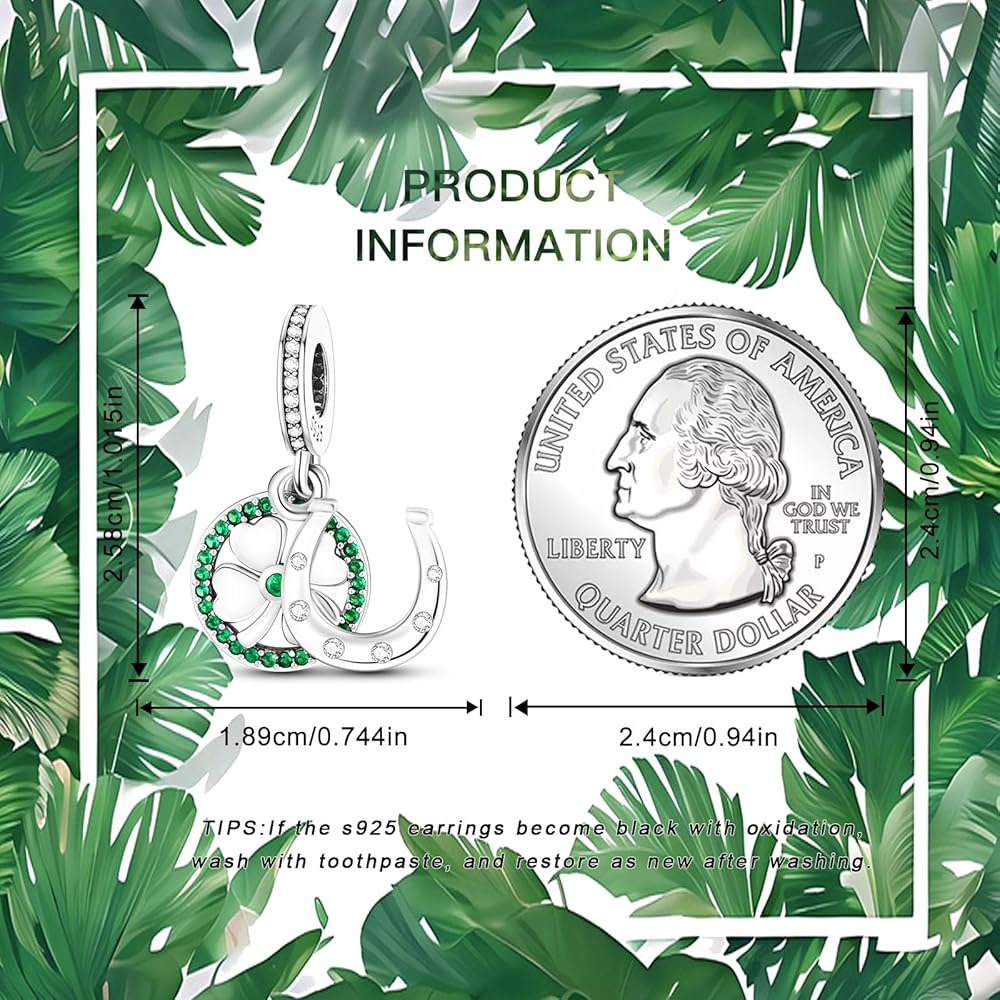 925 Sterling Silver Charms Beads for Bracelets Necklaces, 4 Four Clover Leaf Sunflower Ladybird Honeycomb Infinite Heart Pendant, Green Flower Lucky Jewelry Birthday Gifts for Women Men