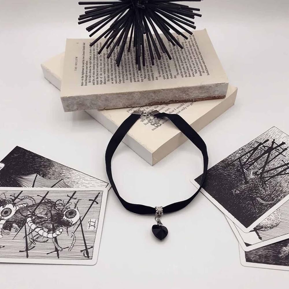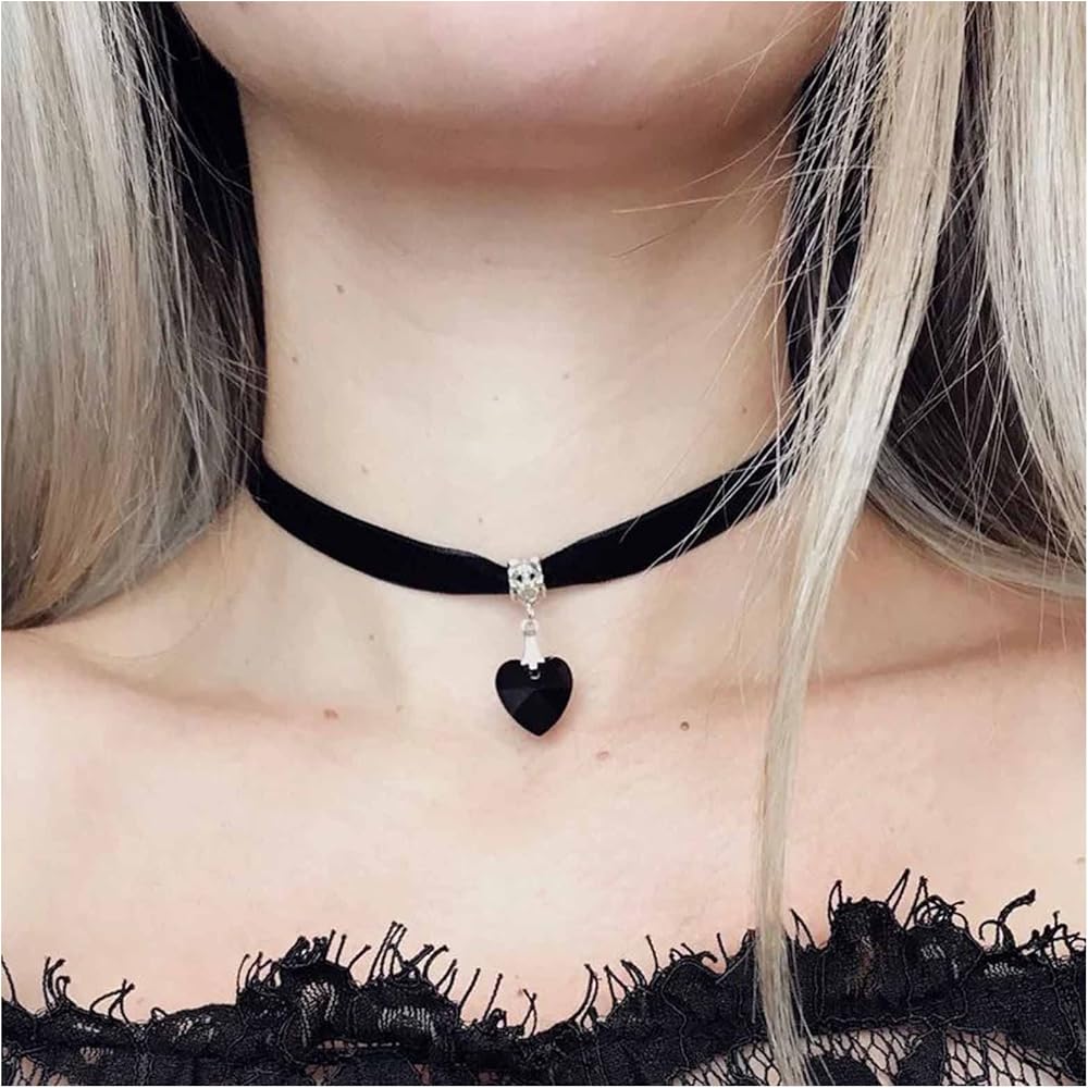 Punk Black Velvet Choker Necklace Love Heart Pendant Necklace Vintage Black Satin Choker Necklace Gothic Retro Leather Collar Necklace Chain Jewelry for Women Prom Party