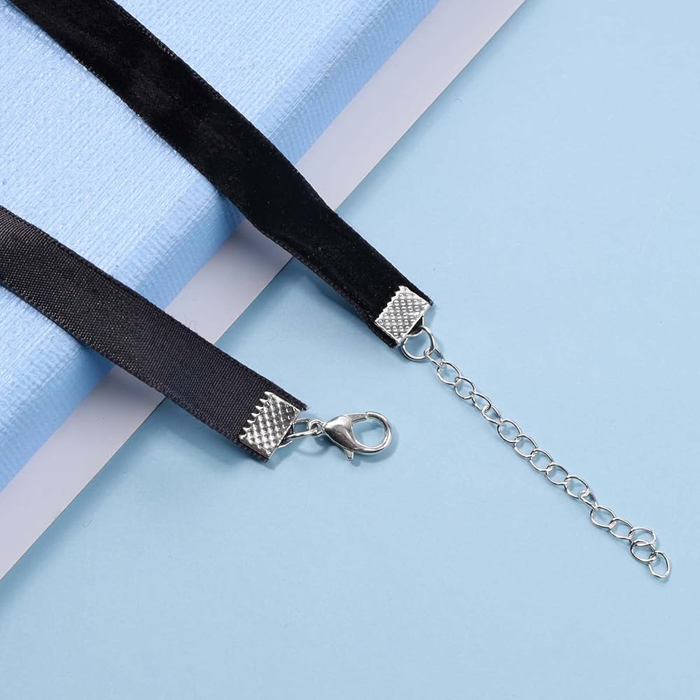 Black Silk Ribbon Choker Necklace approach 15inch,with 2 inch extension chain,adjustable for you.