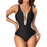 Sexy One Piece Swimsuit for Women: The deep V-neck plunge design, combined with the bandages at the front and sides, will make you look flattering and sexy.