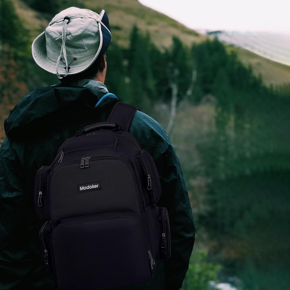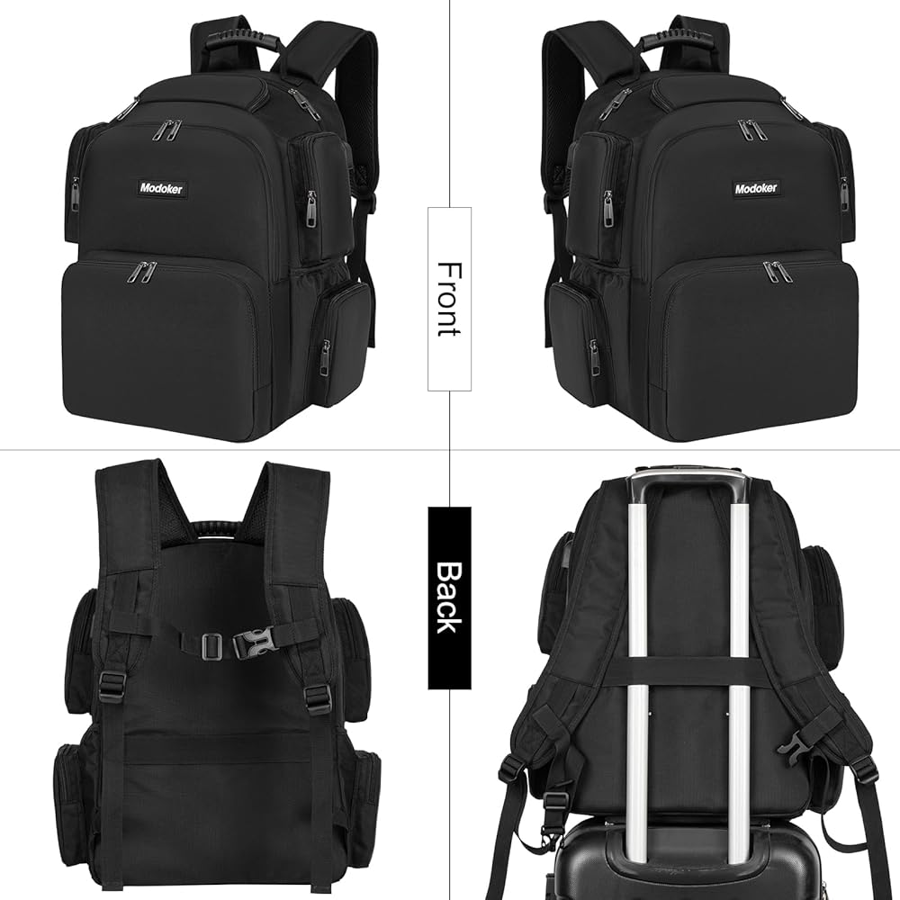 Modoker 18.9 Inch Travel Backpack for Men Computer Backpack with USB Charging Port Laptop Backpacks for Traveling on Airline Carry on Work Backpack Heavy Duty Backpack,Black
