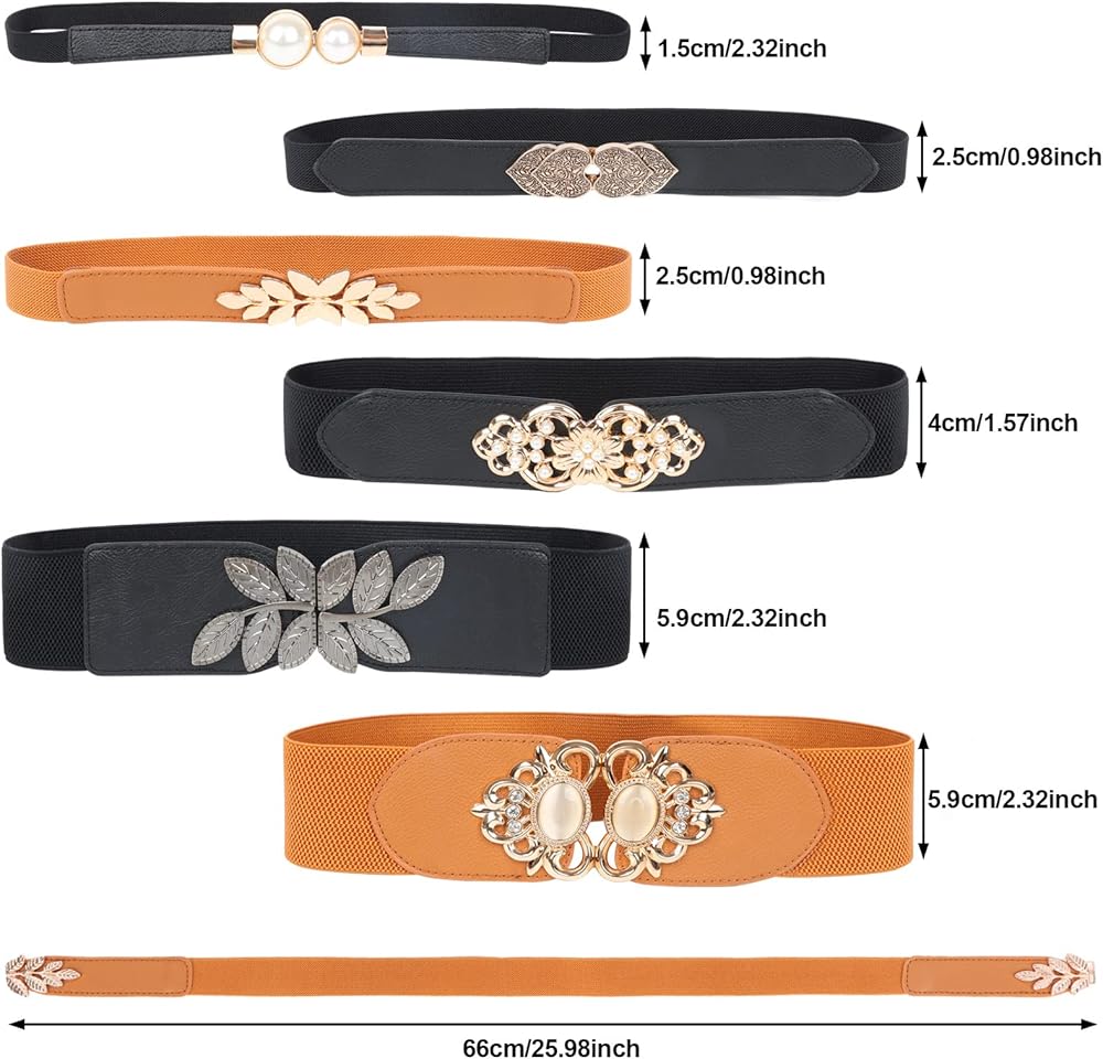 تشمل العبوة: 6 قطع من حزام النساء المطاطي، هذا الشريط المطاطي في أحزمة بإبزيم مكتنز كلاسيكية للفساتين النسائية في أي موسم، هذا الحزام الجلدي الرائع الحاصل على براءة اختراع هو إكسسوار لا غنى عنه لأي خزانة ملابس.