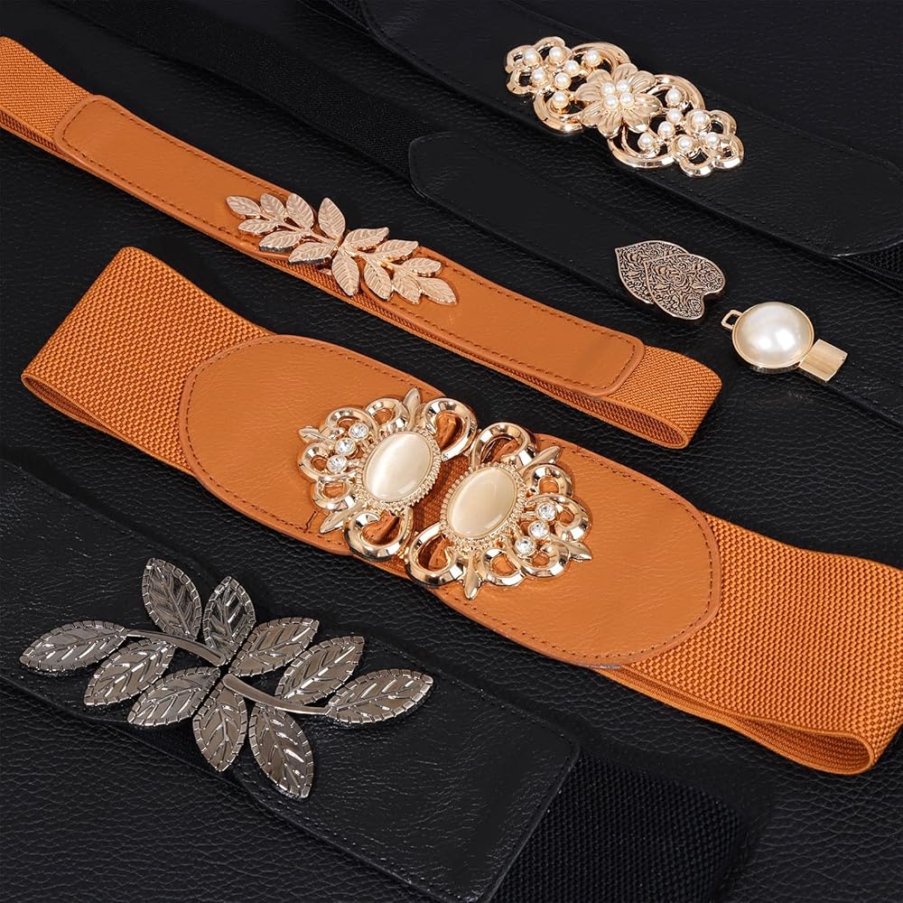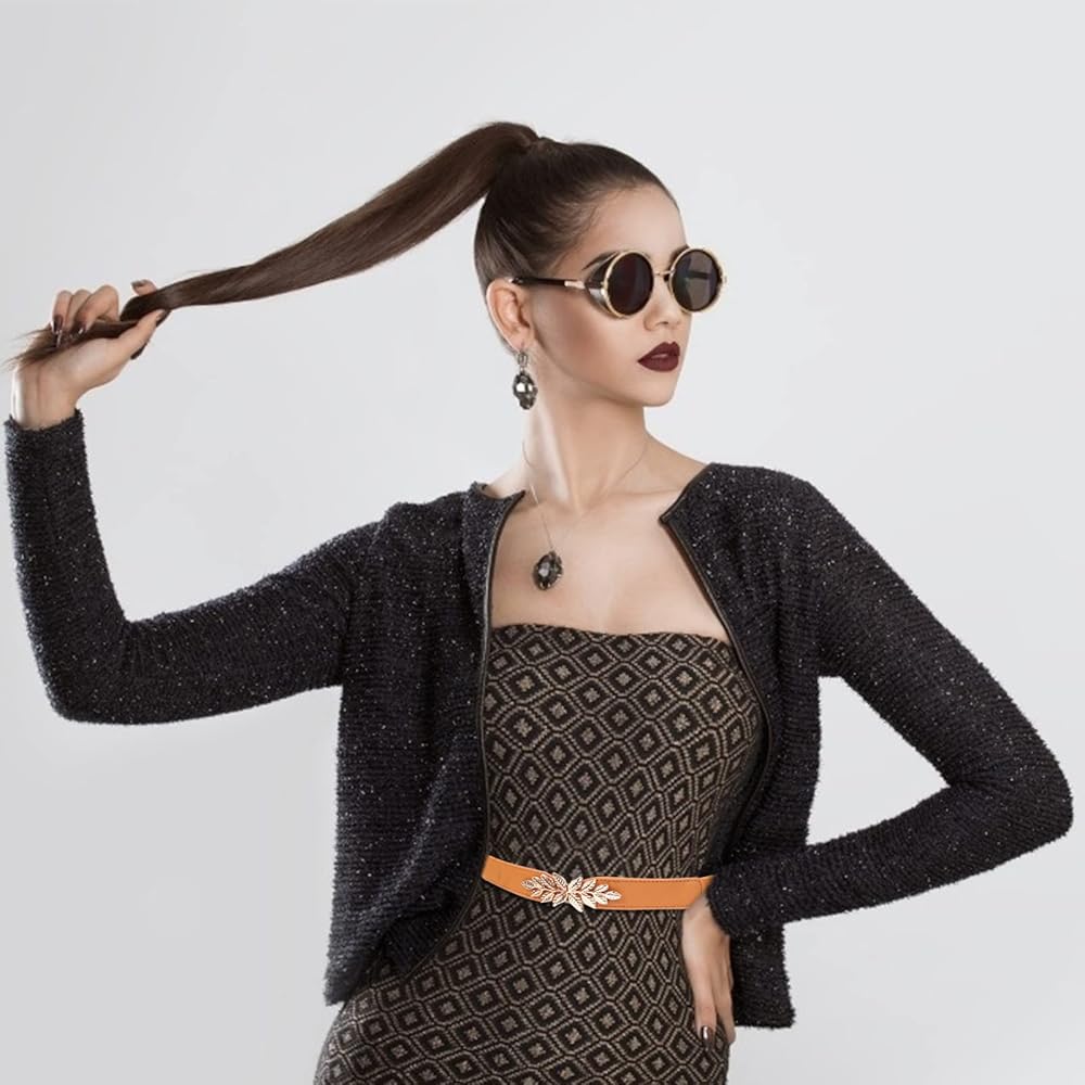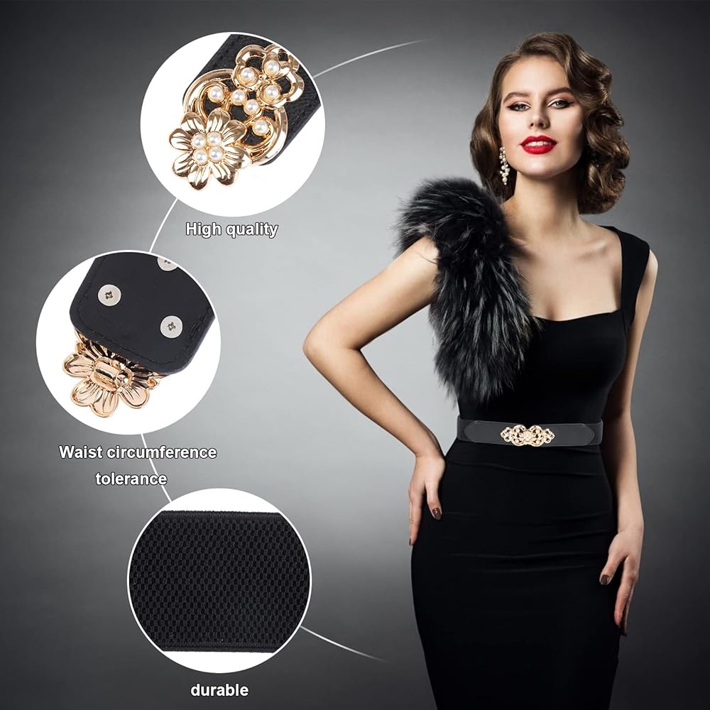 نمط أنيق: أحزمة أنيقة ذات إبزيم مكتنز للسيدات للفستان/التنورة/البدلة في أي موسم. تصميم عصري وكلاسيكي لا يفوت بمرور الوقت، جودة عالية تجعل الحزام يستخدم لفترة طويلة.