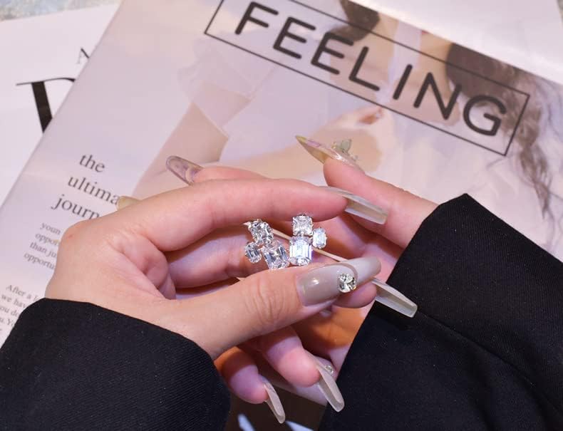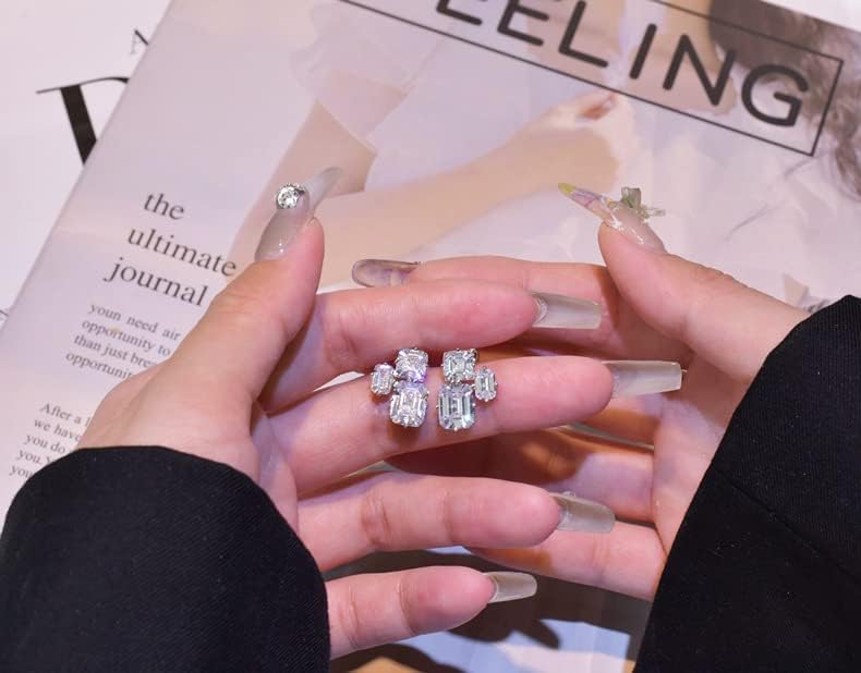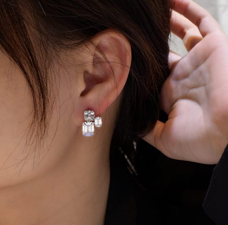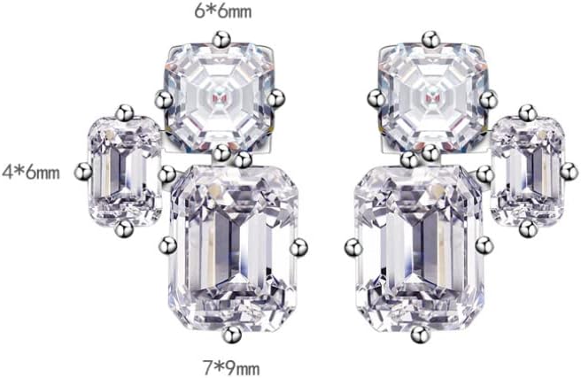 - PREMIUM QUALITY - Big rectangle cubic zirconia stud earrings are plated with high quality rhodium over 925 sterling silver, hypoallergenic for sensitive skin. All 3 cubic zirconia stones are hand-selected 5A quality, similar shining as real diamonds. Made to last and designed to NEVER look cheap.