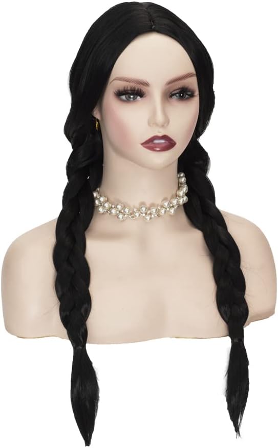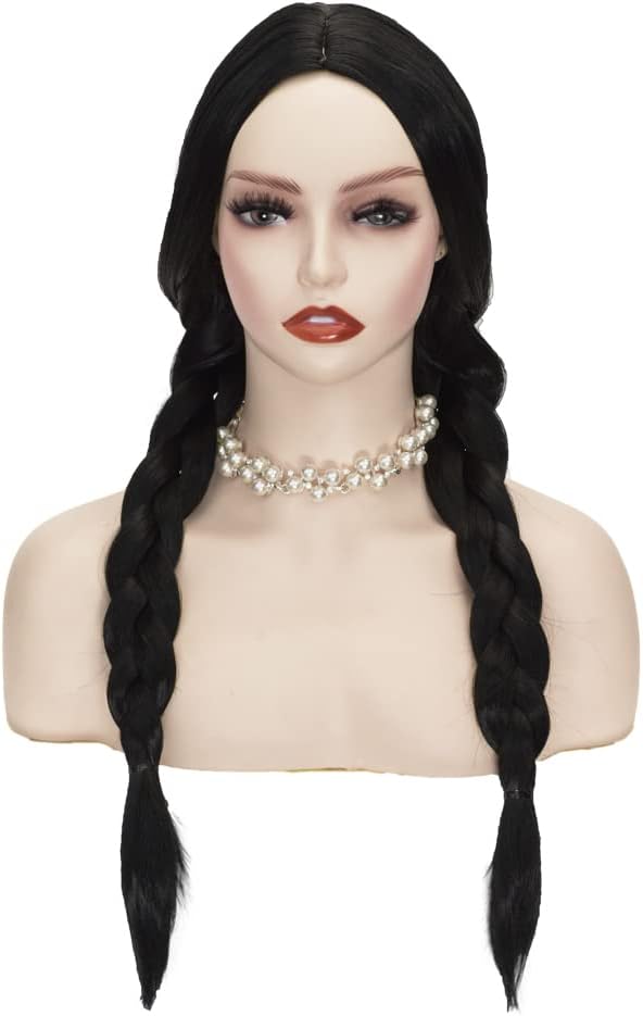 22 inches Long Black Wig with 2 ponytail Synthetic Wig for Women Halloween Costume Party Cosplay Wig