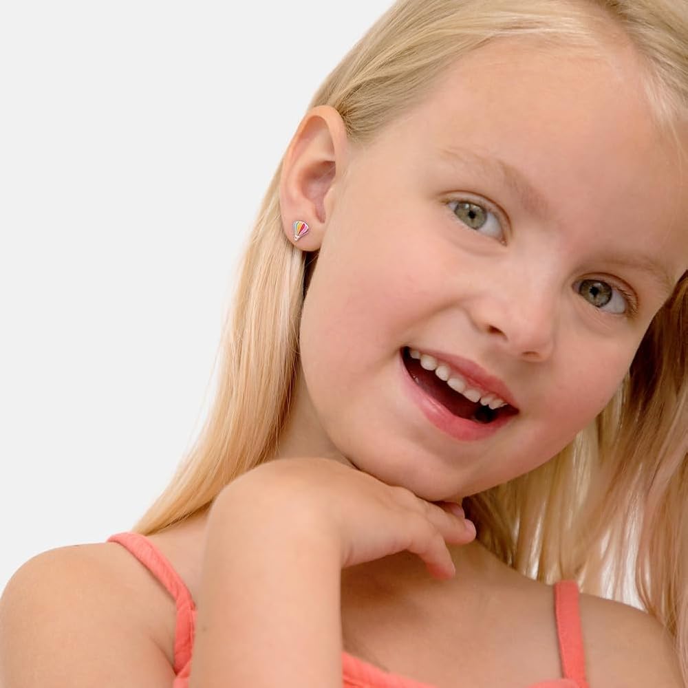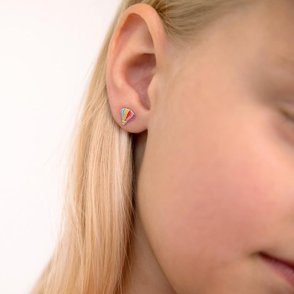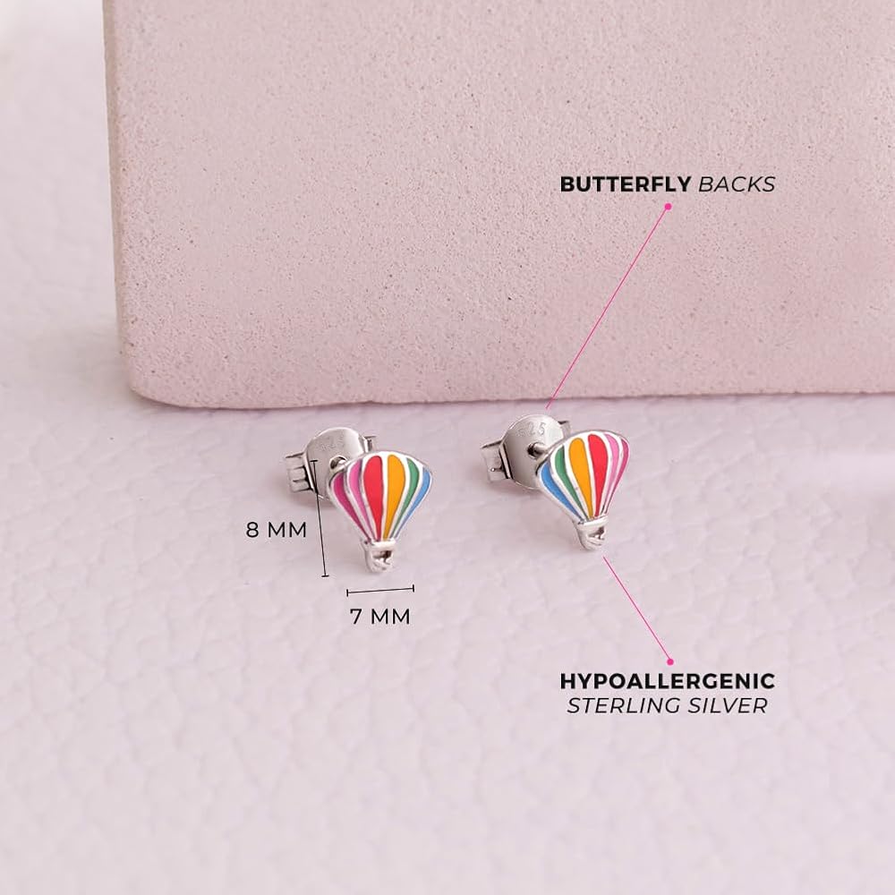 HYPOALLERGENIC: A burst of bright colors beautifully adorn the details within these kids air balloon push back earrings. Crafted with genuine 925 Sterling Silver that is naturally HYPOALLERGENIC, 100% safe for sensitive pierced skin. It is a high-quality material, a classic that will stand the test of time. Our quality and affordable products comply with ASTM F2923 (Standard Specification for Consumer Product Safety for Children's Jewelry).