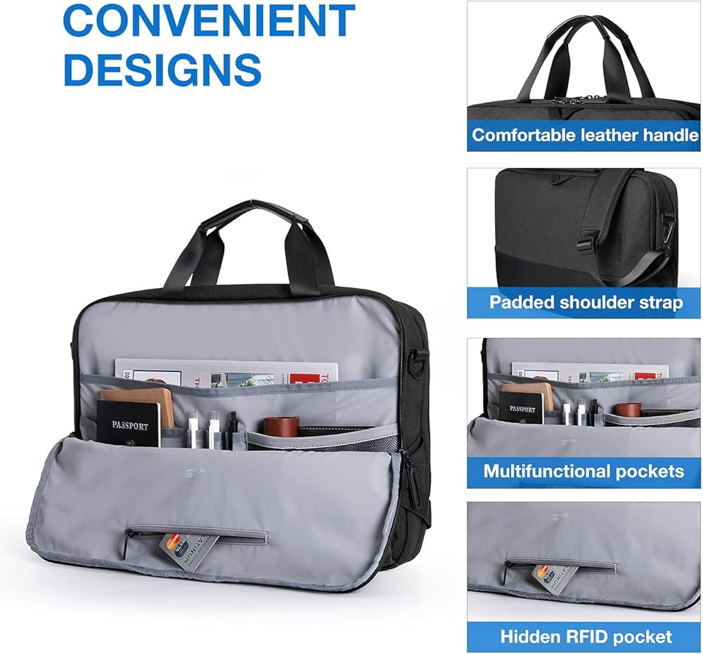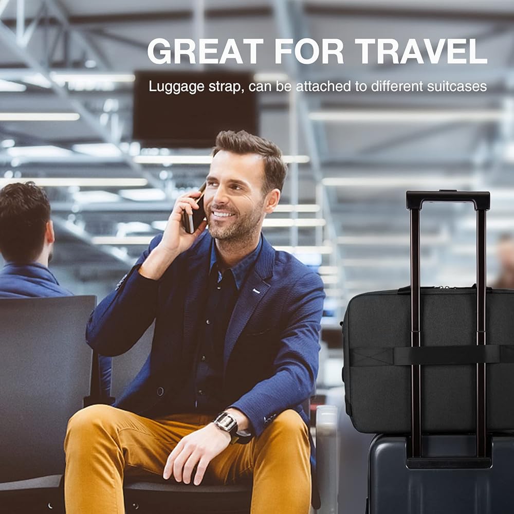 CONVENIENTE DESIGN- anti theft RFID pockets for value items, durable leather handles, adjustable padded shoulder strap and luggage strap can be attached to different suitcases
