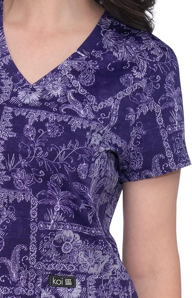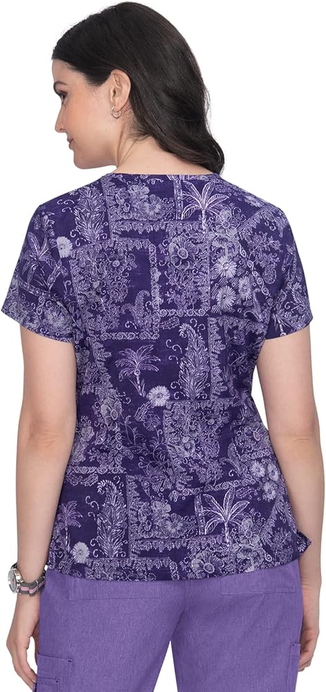 KOI Basics Leslie Women's 2-Pocket Stretch Print Top