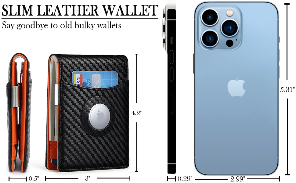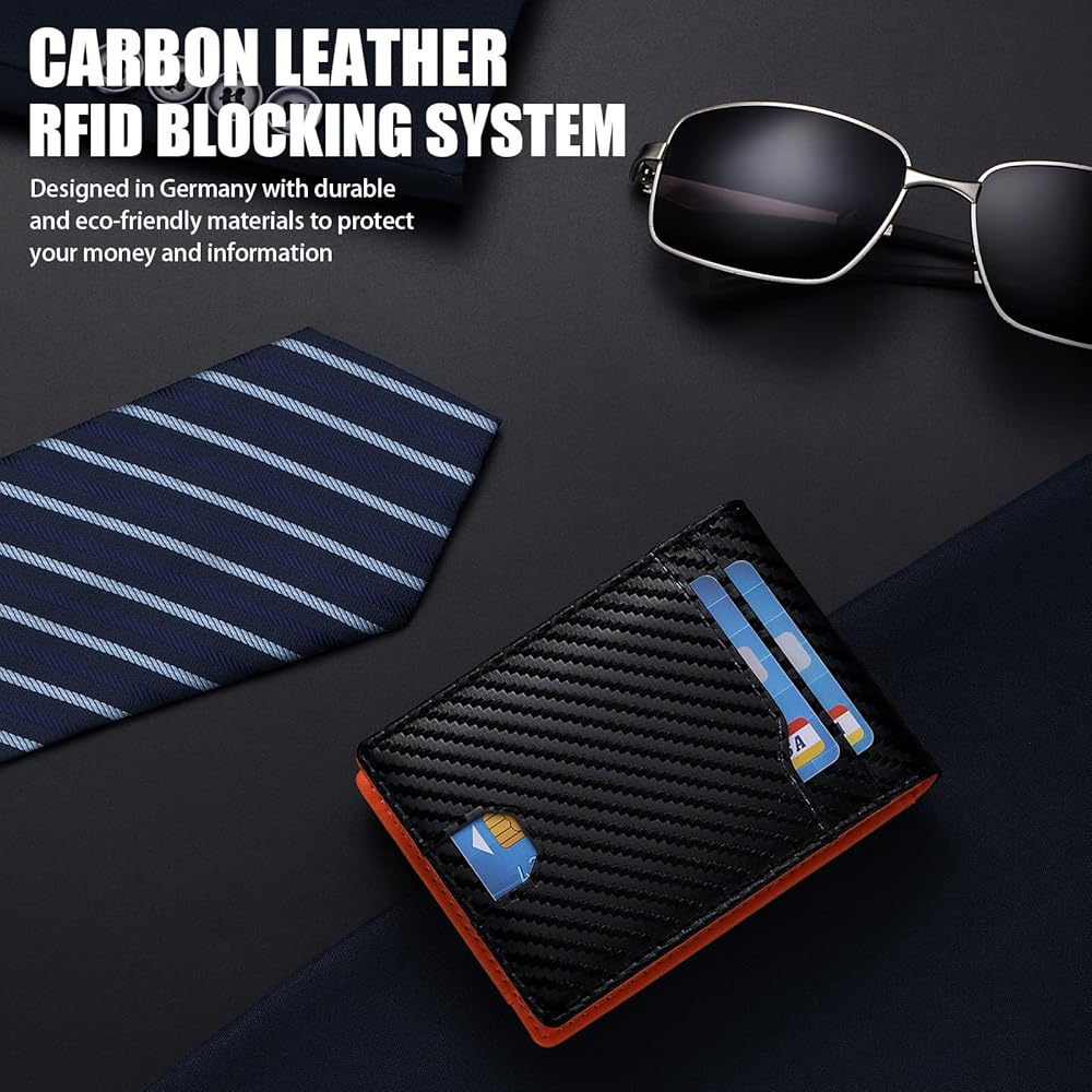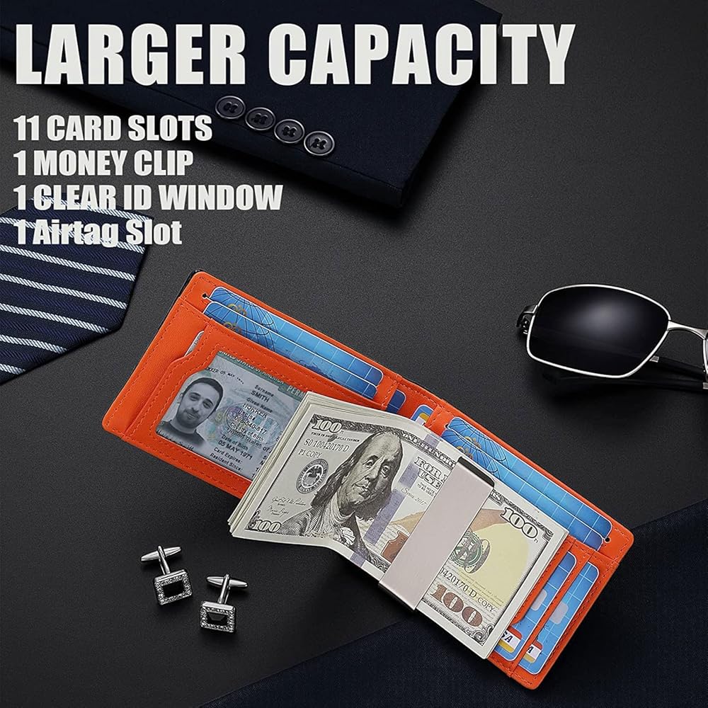 FUNCTIONAL SLIM WALLET - This Men's Slim Wallet fits easily into your front pocket and doesn't bulge, size: 4.2*3*0.5 inches, also with 11 card slots, 1 clear ID window, 1 money clip. Keep everything you need while staying slim