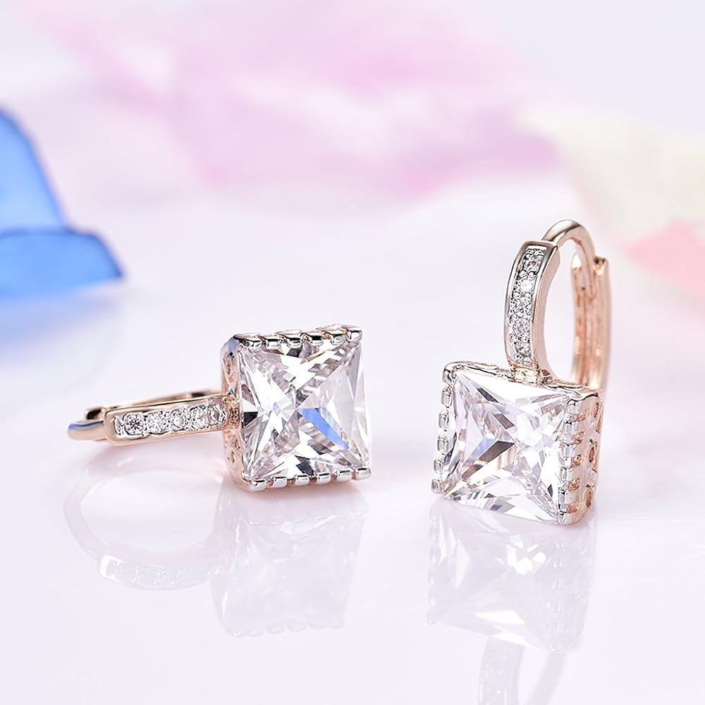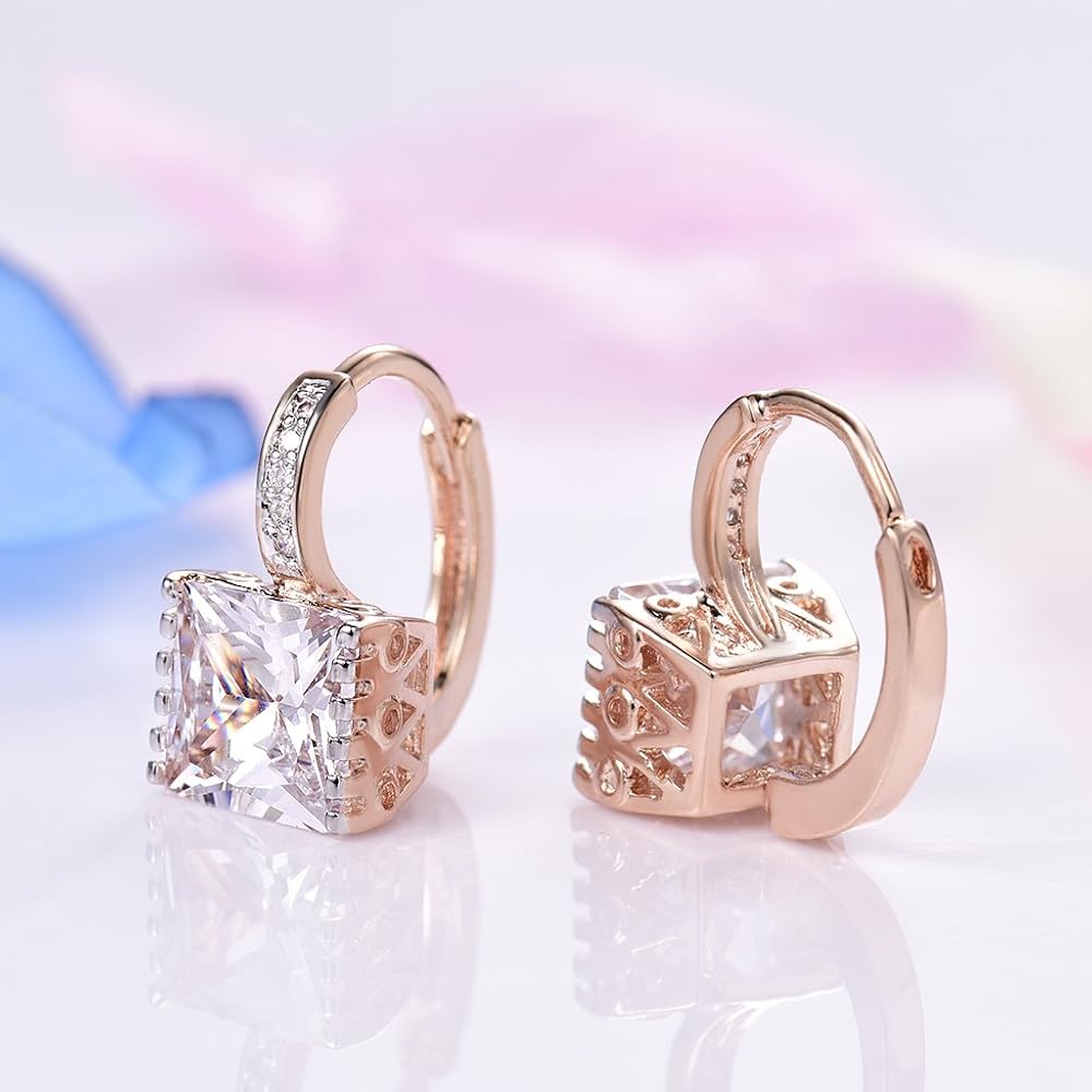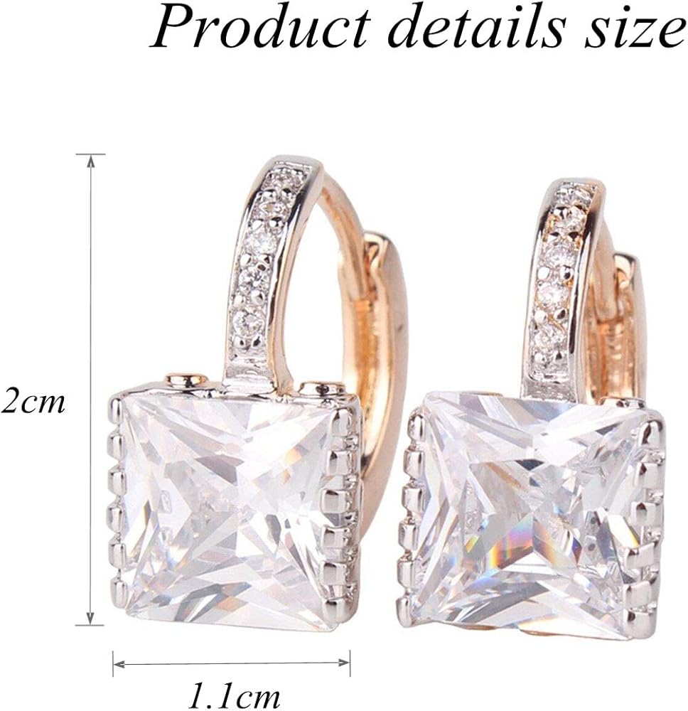 GULICX Gold Tone White CZ Zircon Sparkle Crystal Square Hoop Earrings for Women