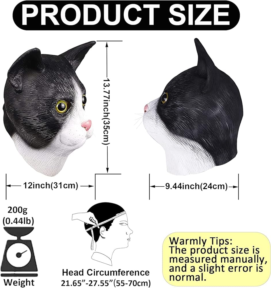 🐱【Non-Toxic & Odorless】- Cat mask made of high-quality 100% natural environmental rubber latex. Very natural realistic and easy to clean.