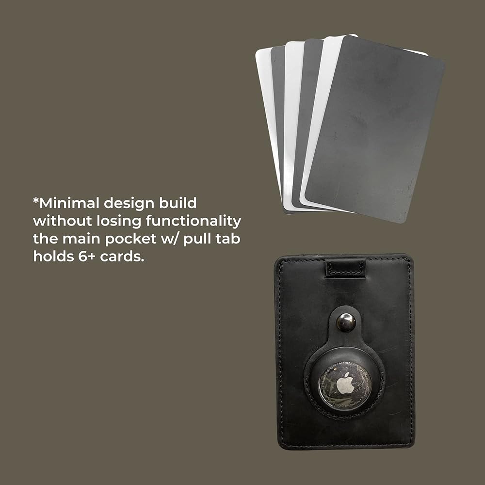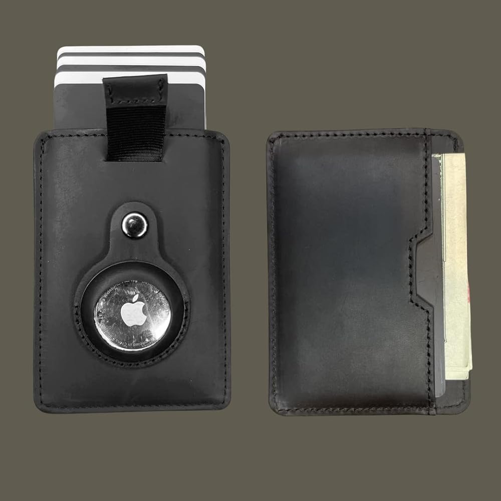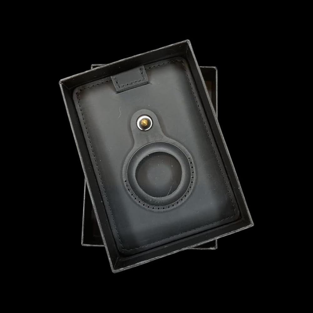 Genuine leather Airtag wallet with secure holder for Air Tag GPS Tracking device This is a well built wallet not with your ordinary AirTag slot, but with a specifically molded and engineered secure pocket. The wallet is very thin at .25 inches. It is RFID blocking, Includes 1x genuine leather AirTag wallet holder in a gift box perfect gift for men and women (Air Tag not included)