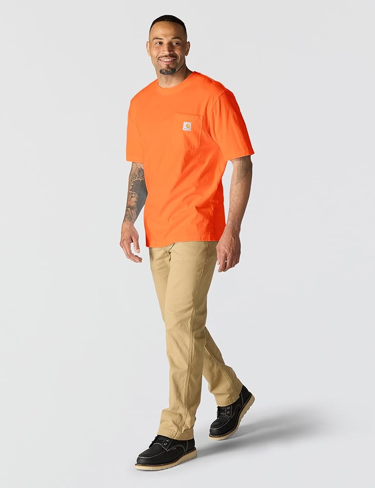 Our pocket t-shirt debuted in 1992, and its rugged cotton design and clean looks made it a fast favorite among the hard-working folks who pulled it on. Though decades and trends have come and gone, there's a reason the K87 remains a classic. This men's t-shirt is made with heavyweight cotton built to handle tough days on the job. It has an loose fit that gives you room to move and a soft feel that only gets better with time.