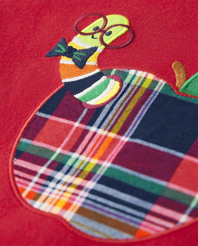 EMBROIDERY — Features apple with worm