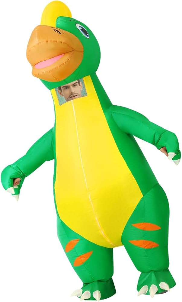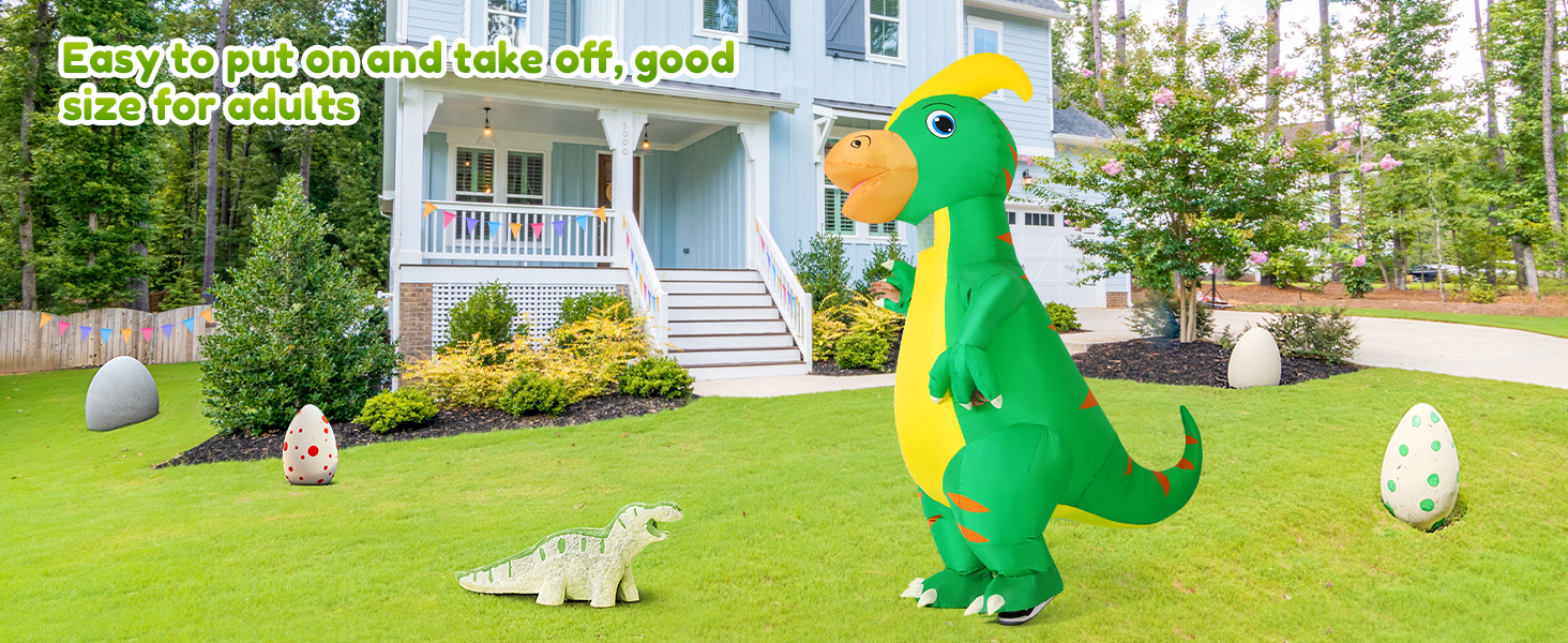 【Occassions】Perfect for Halloween Dress-ups, Halloween Costume Party, Halloween Night Event, Halloween Trick or Treat Events. This dinosaur inflatable costume adult will add lots of fun and make you the most dazzling and attractive presence in the Halloween party
