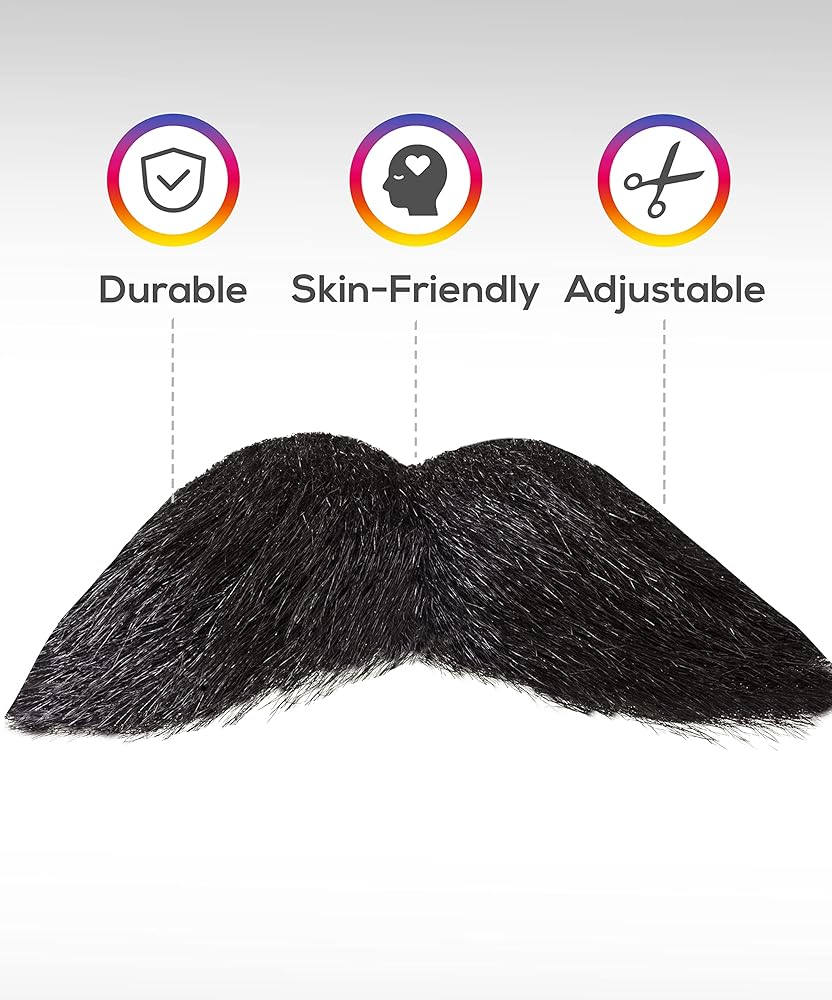 Endless costume capabilities: Our costume mustaches for adults are all made to be universal. This walrus mustache can be used in many instances- from completing your old man beard costume, adding to your cowboy costume's flair, or perhaps you're looking to recreate the legendary Steve Harvey mustache!
