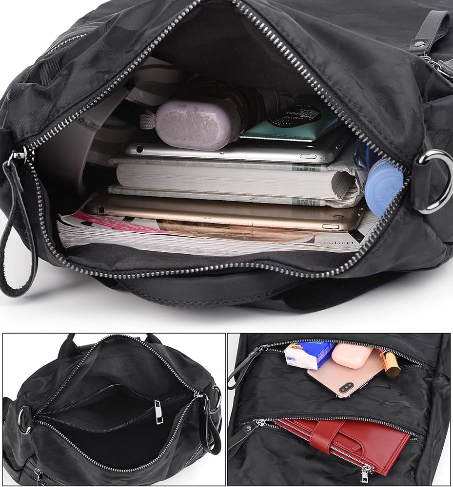 Multi-pockets and Multipurpose - With the multi-pockets, the bag could store and organize iPad, cellphones, purse, books, umbrellas, water bottle, etc. Due to the light weight and stylish shape, the bag could be used for multipurposes such as work, travel, , camping, shopping.