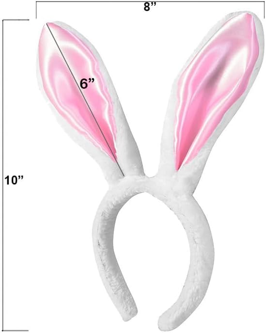- Easter bunny set for adults includes plush white and pink bunny ears, elastic pink bow tie and white furry tail.