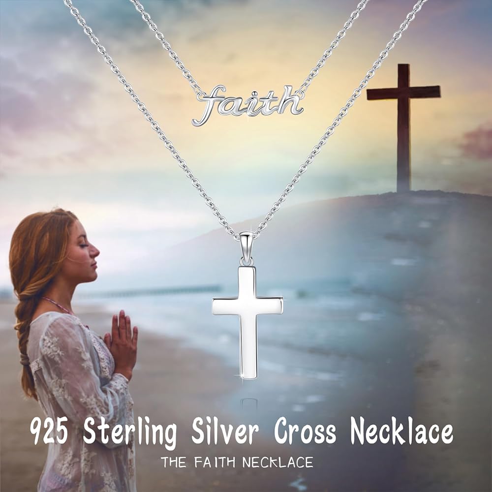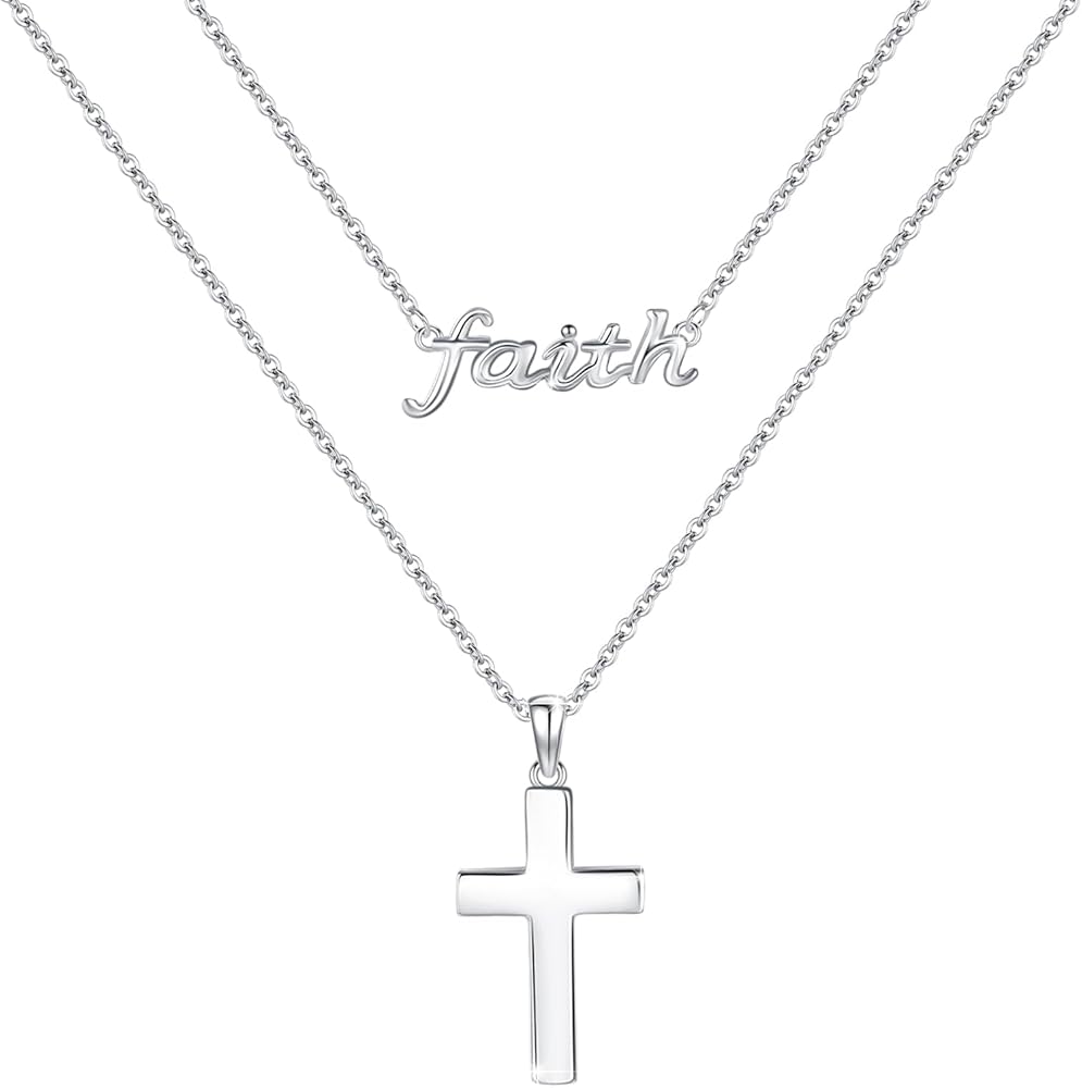 Faith Necklace S925 Sterling Silver Faith Cross Necklaces for Women Girls Sterling Silver Birthstone Pendant Jewlery- Christian faith Script Inspring Jewelry Gift