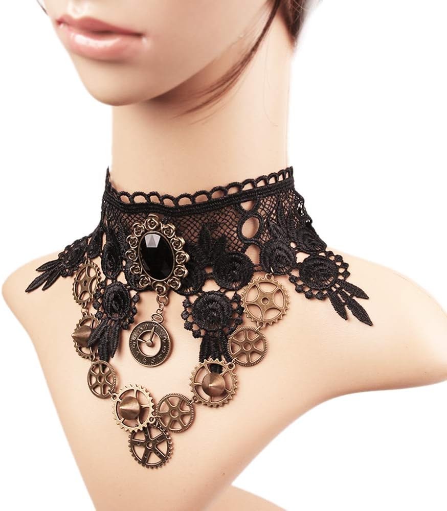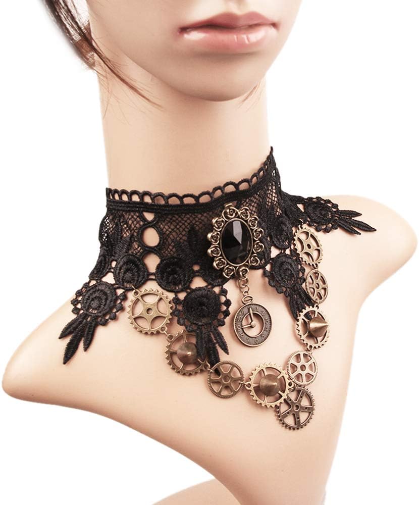 - Excellent craftsmanship & stylish design: Costume necklace for Halloween are made of high quality lace, artificial stones, rhinestone and alloy.