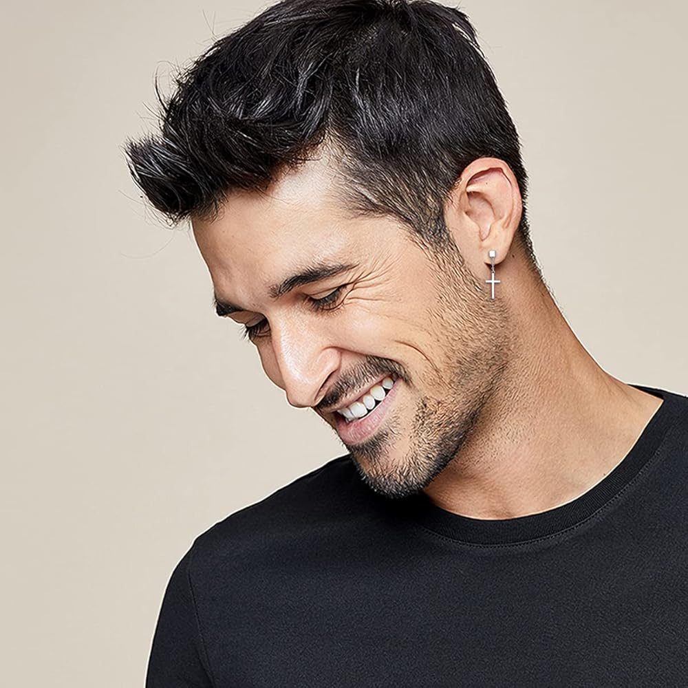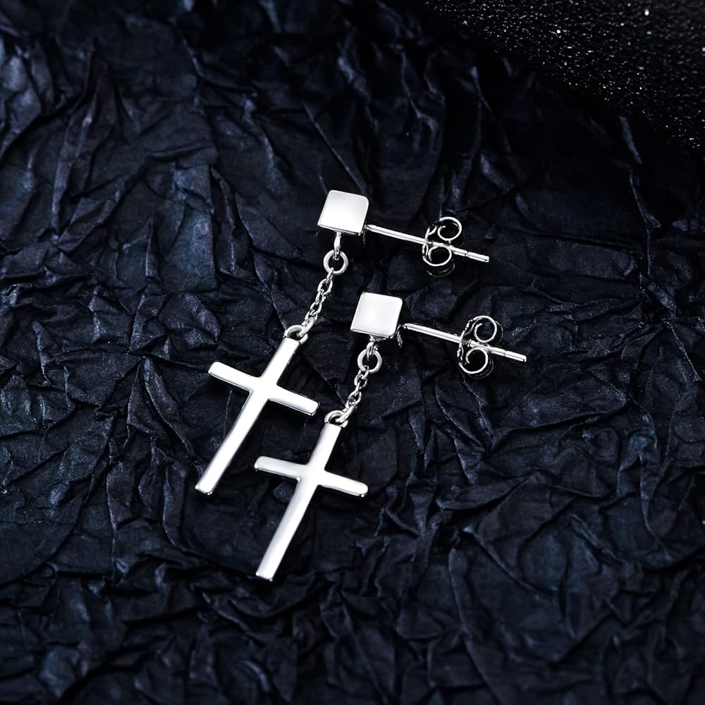 Style: These sterling silver dangling cross earrings feature 3D Cube post. They have a clean and edgy style that would work for men or women.