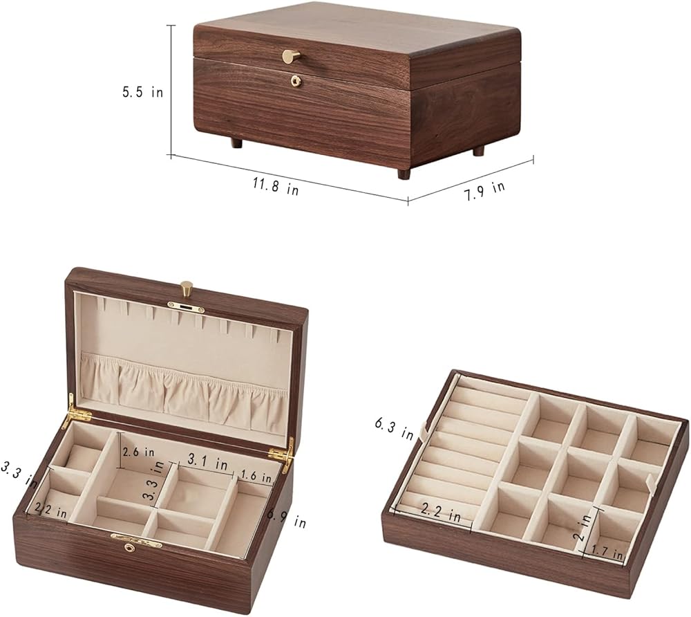 Do you own this large jewelry box? —— Double layer large Storage Jewelry Box (7.9" (D) × 11.8"(W) × 5.5" (H)), ideal gift for loved ones. Give this jewelry box to the people you want to impress and you'll see their big smiles.
