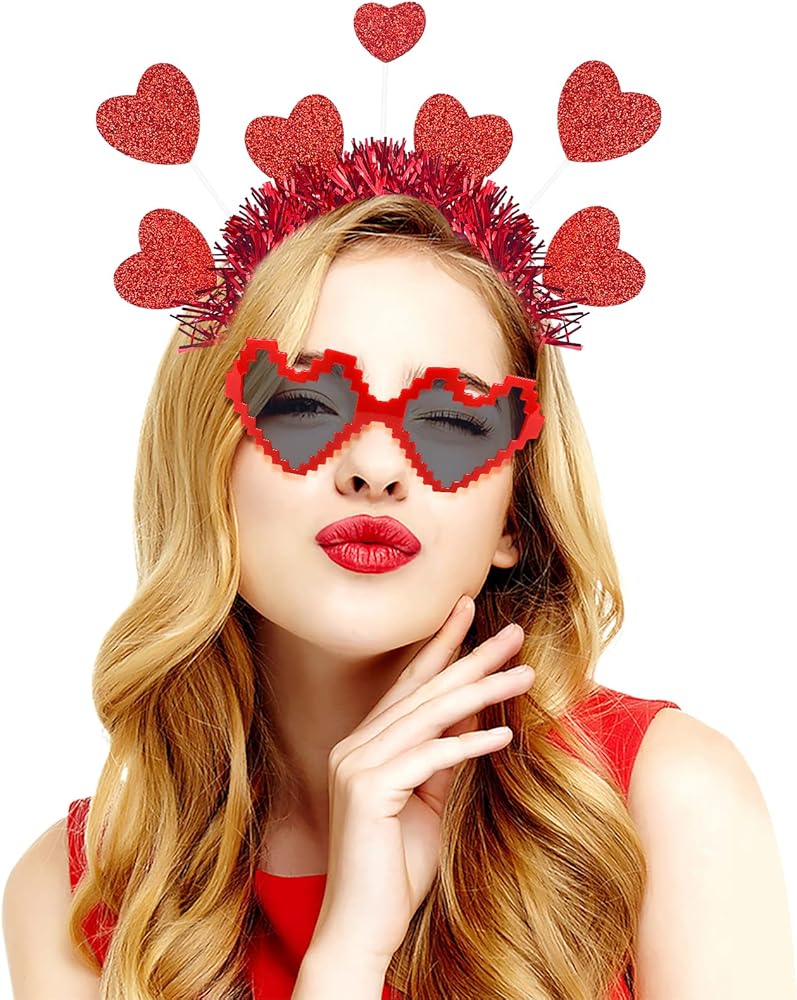 Valentine's Day theme: the clear heart sunglass is designed into a red heart shape, cute and lovely, and the Valentines Day headband is decorated with heart antenna, stylish and elegant, ideal ways to celebrate Valentine's Day