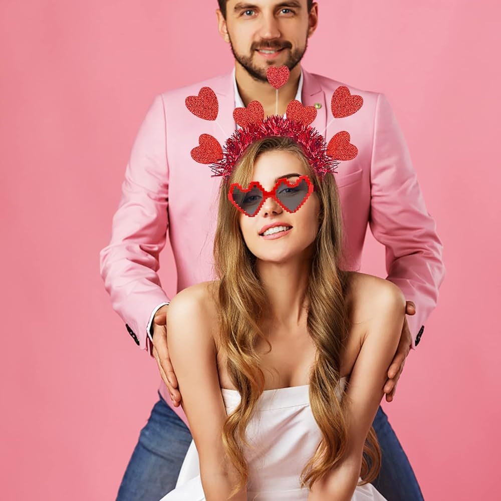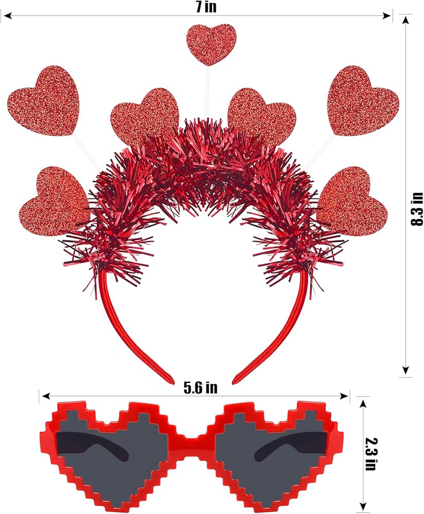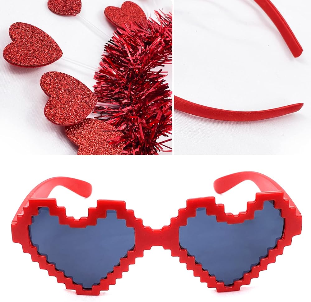 What's contained in the package: Valentines Day Heart Headbands, Mosaic Heart Shape Sunglasses.a practical combination for your daily wear and attending Valentine's Day parties