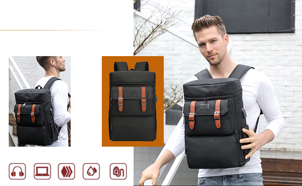 USB & HEADPHONE PORT DESIGN:With a USB charging port and headphone jack extended on the side of the backpack and built-in charging cable and headphone cable inside, provides convenience to charge your phone and listen music while travel walking work.Please noted this backpack doesn't equipped power bank.