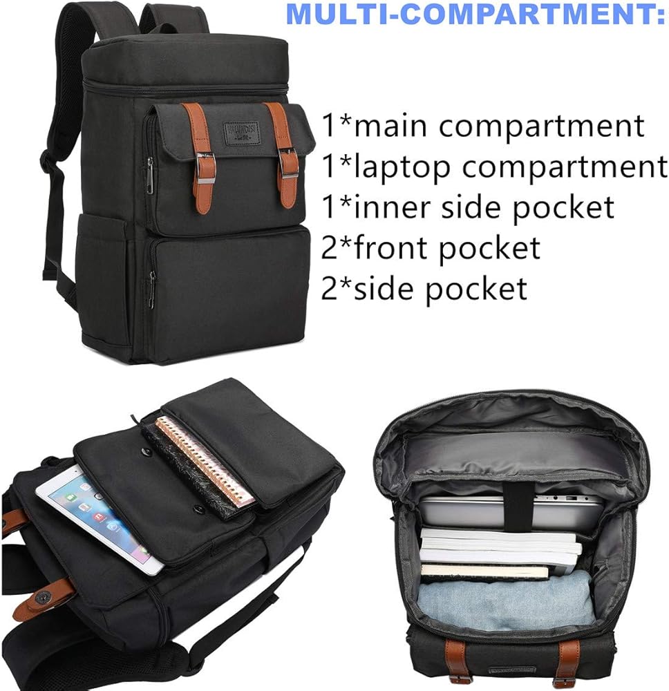 MULTI-COMPARTMENT & POCKETS: Laptop Backpack owns 1 main pockets & 1 laptop compartment & 1 inner pockets & 2fornt pockets & 2 side pockets, plenty of room for books, computer, notebooks, water bottles and other tech gears. Lightweight daypack/weekend bag, professional backpack, college backpack for men/women, you can use it at anywhere for travel, weekend trip, daily necessities, tech electronics accessories.
