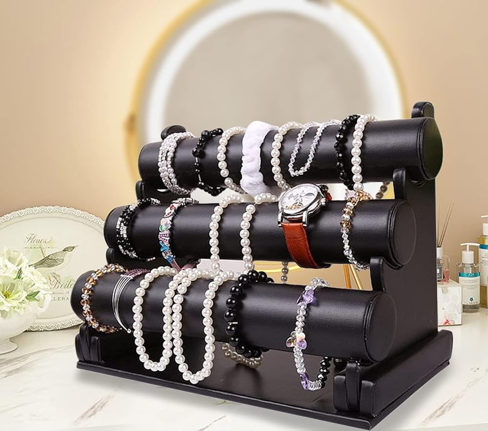 [MULTIFUNCTIONAL] Fashionably organizes and displays your favorite bracelets, necklaces and watches. Multi-level design of our Jewery Display keeps all of your jewelry in sight and easily accessable, which is sure to help you organize your jewelry collection without taking up much space.