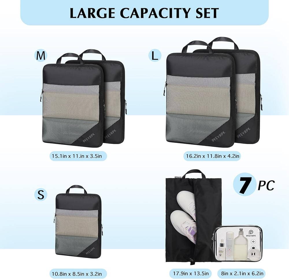 【Lightweight and Versatile】Designed to be lightweight and versatile, our Compression Packing Cubes are perfect for any travel adventure. Whether you're going on a weekend getaway or an extended trip, these organizers will streamline your packing process.